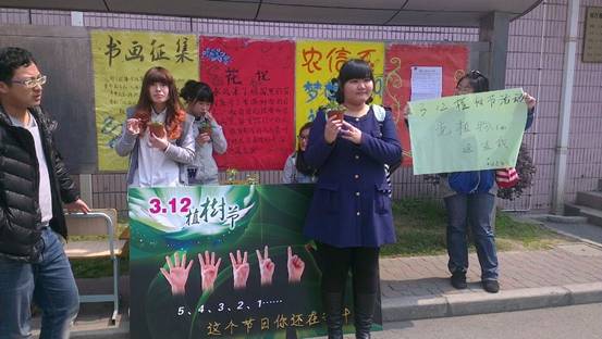 3月17日中午,农业生物与生态技术系绿色家园环保社在食堂门口开展了“了解身边的绿色”植树节特别活动。