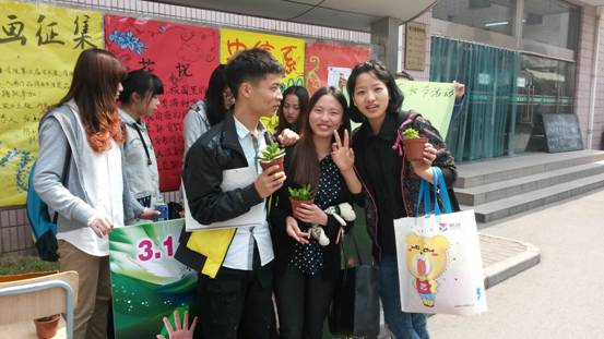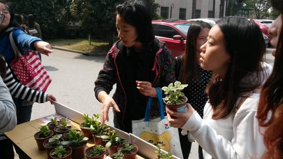 原定于3月12号的活动因天气原因改期,同学关注环保的热情却丝毫没有减少。“说出校园内的5种植物即可获得1盆盆栽,说得植物名越多得到的盆栽就越多。”11点不到,社团成员们热情向过往同学宣传,不少同学纷纷上前细说校园内的各种植物,现场气氛甚是活跃,很快,30盆小植物全部被同学作为“战果”拿下。