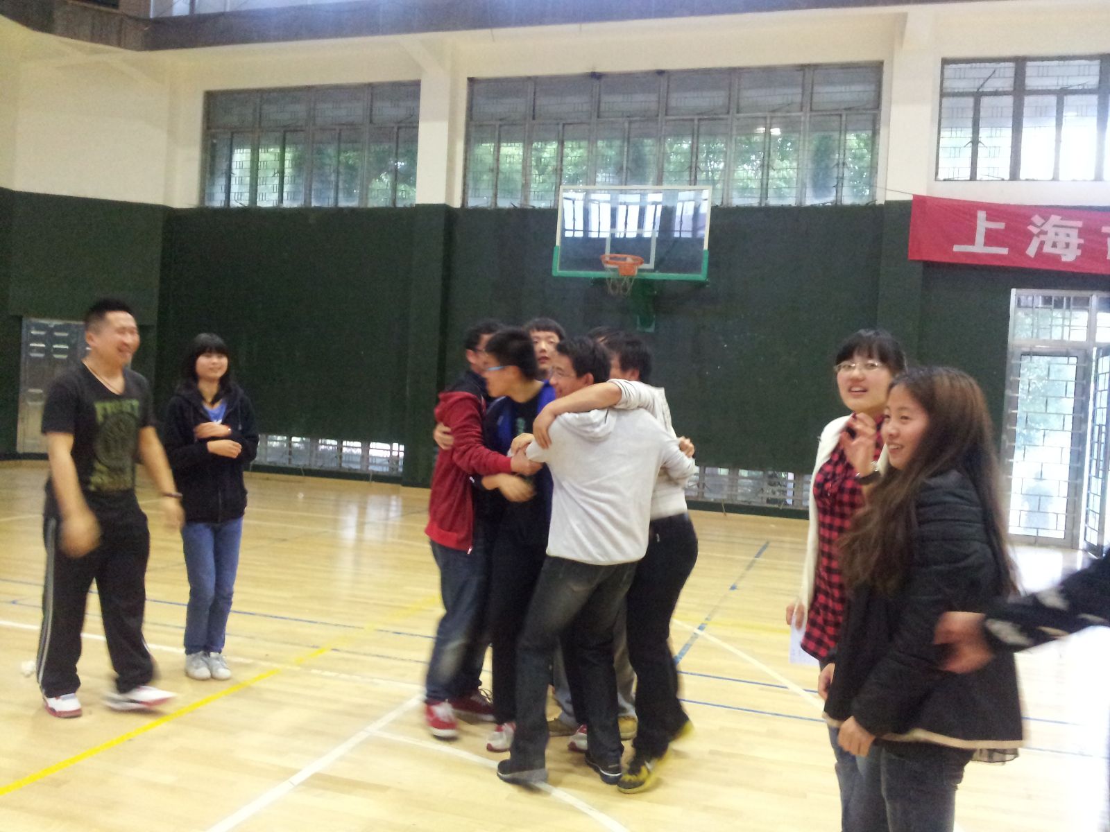 活动采取自由分组法,5人一组,有“我们抱团吧”、“顶书接力”、“头传气球”三项游戏,充满激情与“惊险”的环节考验着参赛小队的聪慧与默契。“我们抱团吧”,主持人一声令下,同学们快速寻找自己的小伙伴,紧紧拥抱在一起。没能抱团成功的,只能在圈外用“幽怨”的“哀嚎”,“别抛弃我……”。几轮热身之后,队员的陌生感和拘束感慢慢消除,在接下来的游戏中完全放开手脚。“顶书接力”中为了保持平衡并成功将书传给队友,队员们各种奇葩怪异的姿势齐上场,引来现场观众阵阵笑声。“头传气球”环节轻飘飘的气球更是让队员感叹空有一身好力气。活动中加油声与呐喊声不绝于耳,现场气氛热烈。最终由骆林、范超杰、江志良、吕曼奇和周琦宝组成的小组以总分17分的成绩夺得了本次比赛的冠军,夺得大奖。现场参与同学拿到了精美的小礼物。