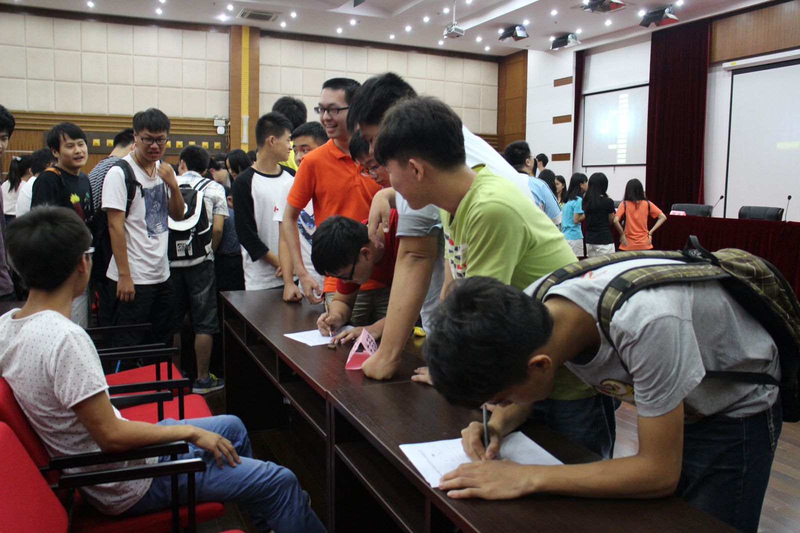 交流会结束后,各部负责同学分别以多种形式介绍部门职责并进行招新。据不完全统计,共有258人次、100余名新生报名参加各部门。其中体育部和食全食美社团最受新生们欢迎,均约40人报名,易班和文艺部不尽人意,受到冷落。之后系部将进一步在新生中宣传易班和文艺部,以期让更多的人了解和加入。各部门将在本周四和下周一晚陆续安排面试。