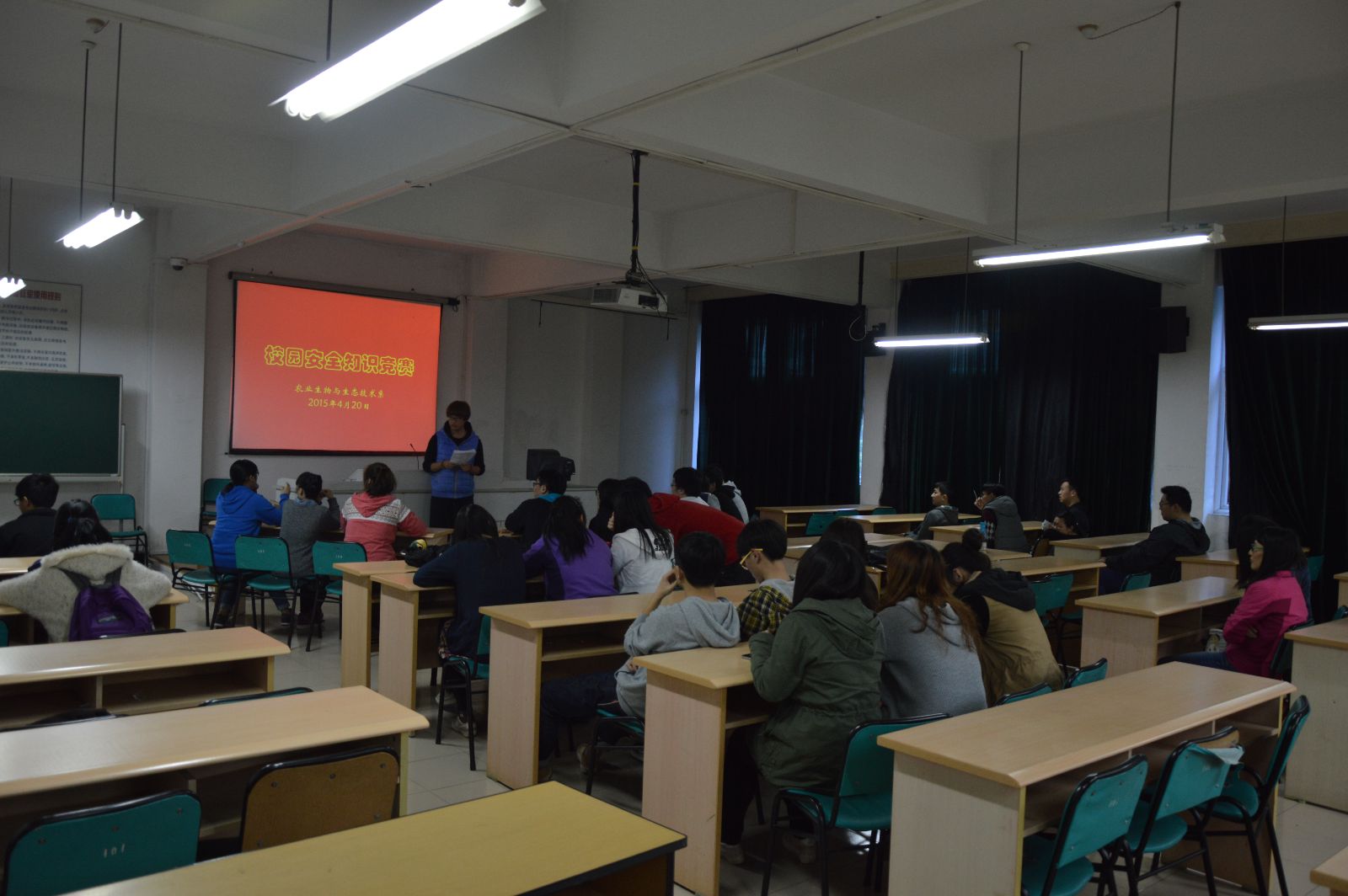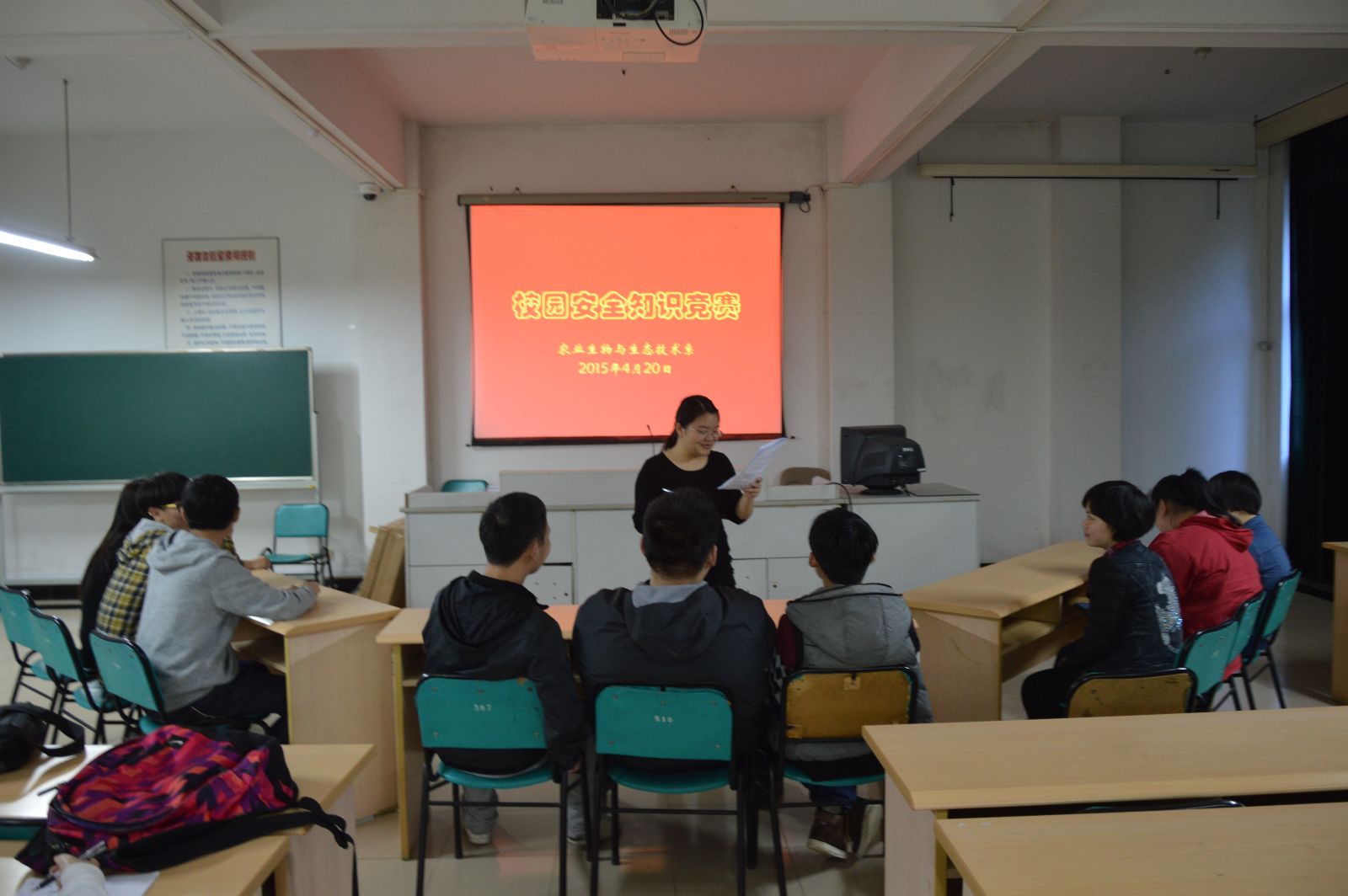 4月20日下午,我系在第一教学楼202室举办了“安全伴我行”校园安全知识竞赛。我系团总支书记苌建菊老师以及我系13、14级各班学生代表均参加了本次活动。本次活动由我系学生会纪检部组织。
