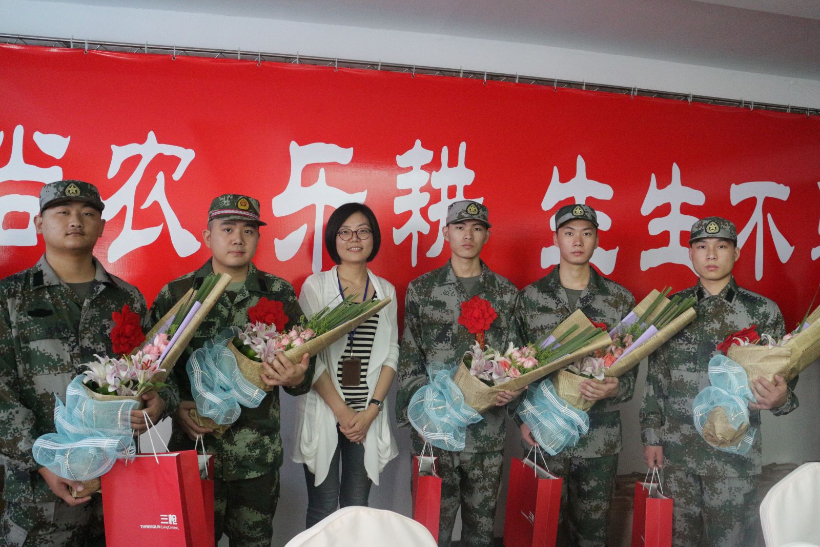 会后,党支部书记蒋洁代表系部为5位应征入伍大学生赠送了鲜花和纪念品并合影留念,祝愿他们早日成为一名合格的军人,为系部争光。