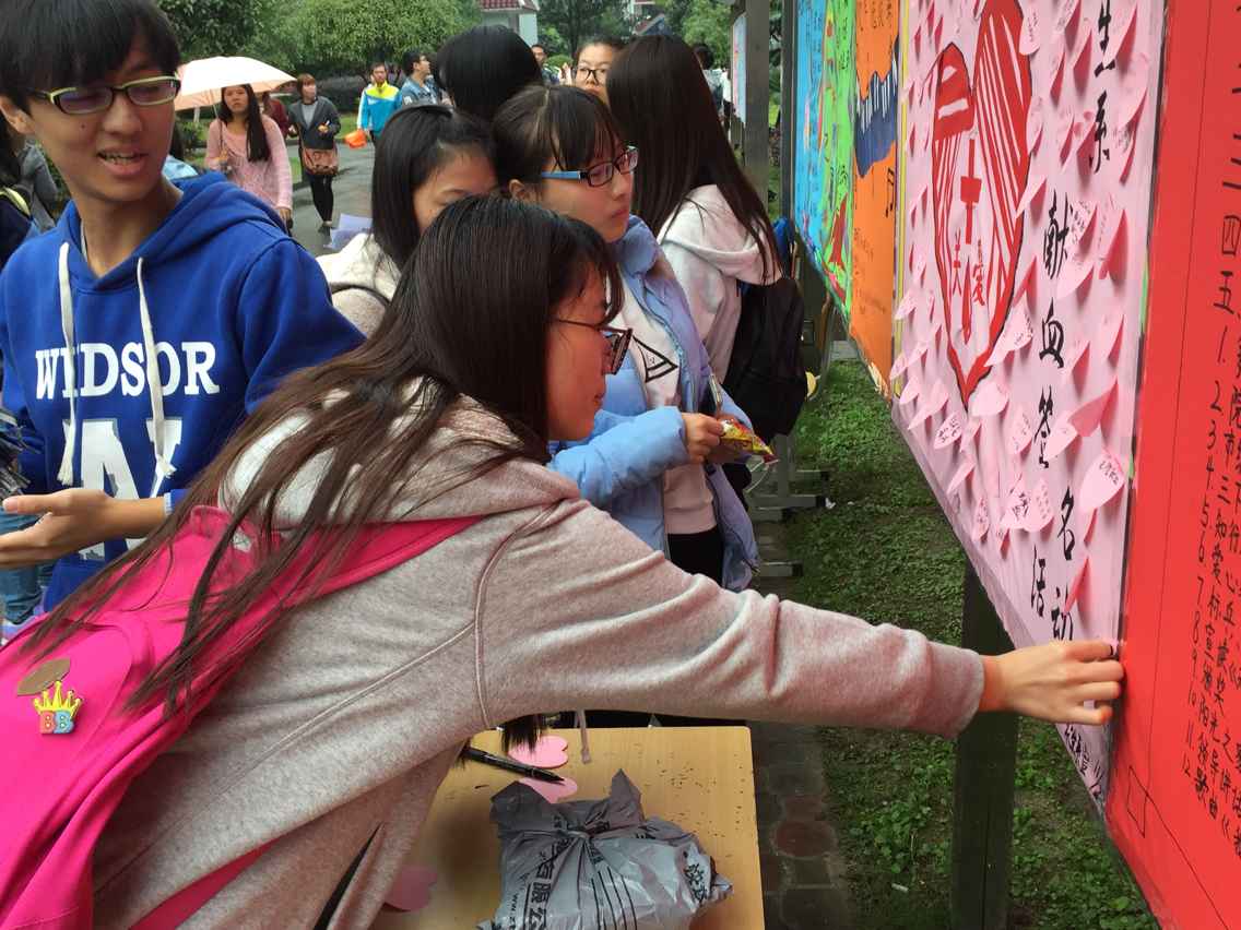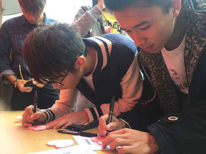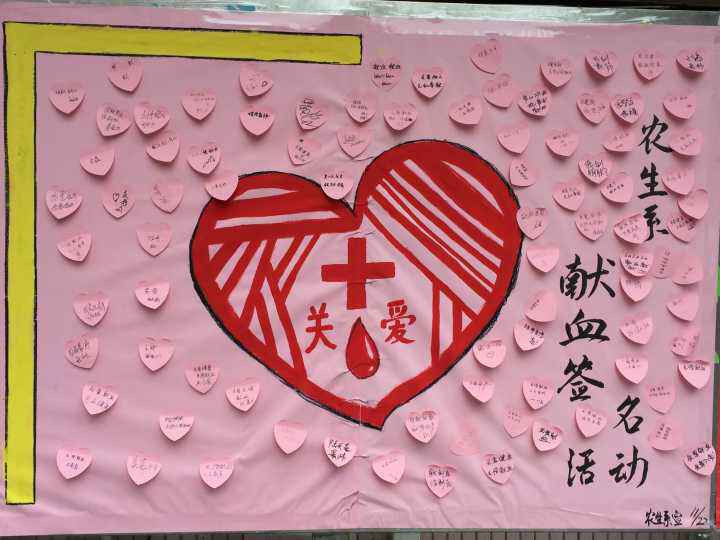 活动开始,志愿者们向来往的同学发放宣传单,普及献血知识。此外,志愿者们还专门绘制了心愿海报,并准备了心形便利贴,吸引过往同学写下祝福与对献血活动的支持,贴满了海报。
