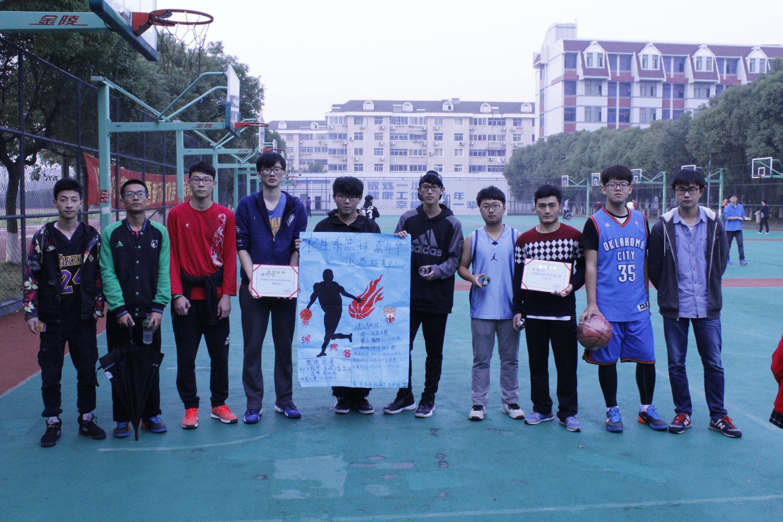 本次篮球嘉年华活动包含了投篮大赛与团队3v3比赛。其中投篮大赛为热身赛,定点投篮,女生投5个进3个,男生10进7即为优胜者。同学们纷纷展现自己的投篮技术,精湛的球技引来观众的一阵阵喝彩。而3v3篮球赛则更加精彩夺人,我系各个班级派均出代表参加,每位球员都使出了浑身解数,为了团队荣誉在赛场上挥洒自己的汗水,经过2周激烈的角逐,环境151脱颖而出,夺得冠军,环境151顾周阳同学获得mvp(最优秀选手)称号。