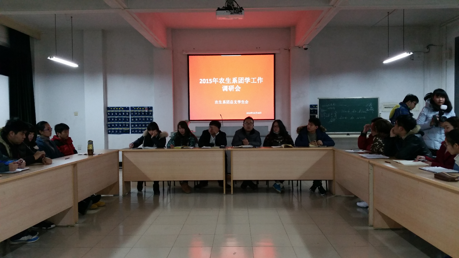 12月16日晚,我系学生会在一教202开展了学期末学生会调研会。学院团委副书记胡慧春老师、院主席薛蕙、院副主席杨晶蕾、院秘书处处长,我系学生会主席及各部门部长、副部长均出席了本次会议。