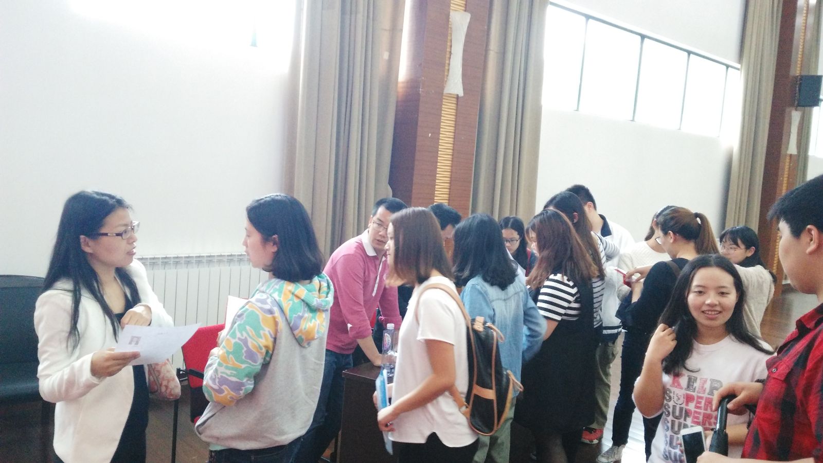 本次会议共邀请了四家企业单位参与,会上,四家企业分别通过ppt、视频形式介绍了各自的企业文化、公司的现状,对各自公司应聘岗位及岗位职责做了详细讲解,也对现场同学提出的问题做了答疑。会后,同学们拿着精心准备的自荐书和简历,穿梭于人流之中,积极与招聘人员交流,主动了解用人单位的情况。