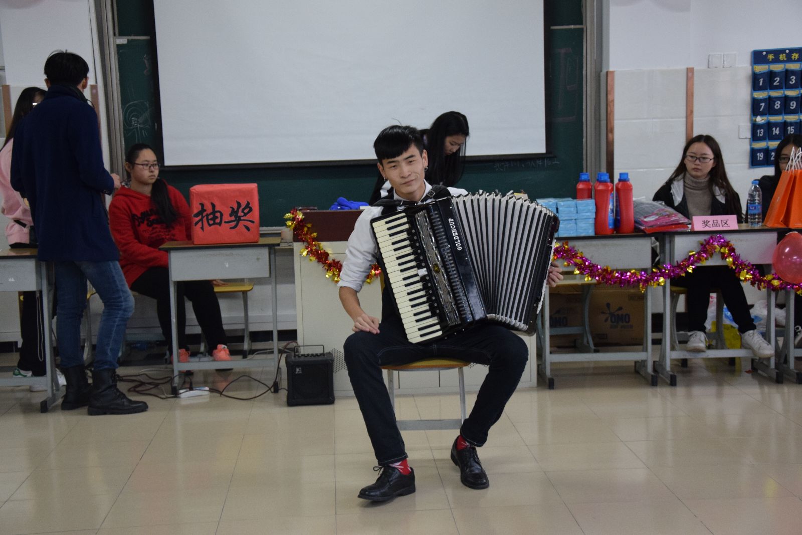 新疆男孩巴力的手风琴独奏《查尔达斯》展示了艺术的激情与魅力。小合唱《我的梦》再点梦想主题。口琴社社长袁亦晨的口琴独奏《dancing in the moonlight》清脆动听。吉他伴奏的《晴天》独唱余音绕梁。