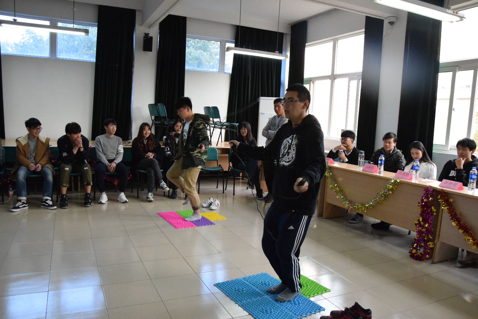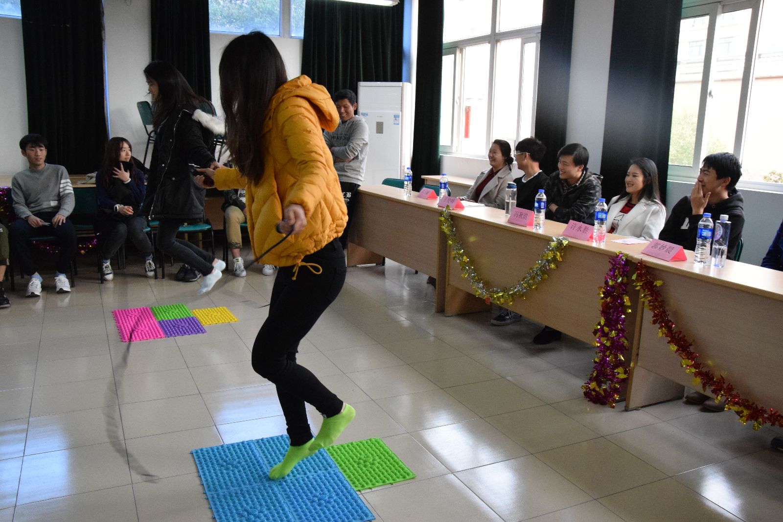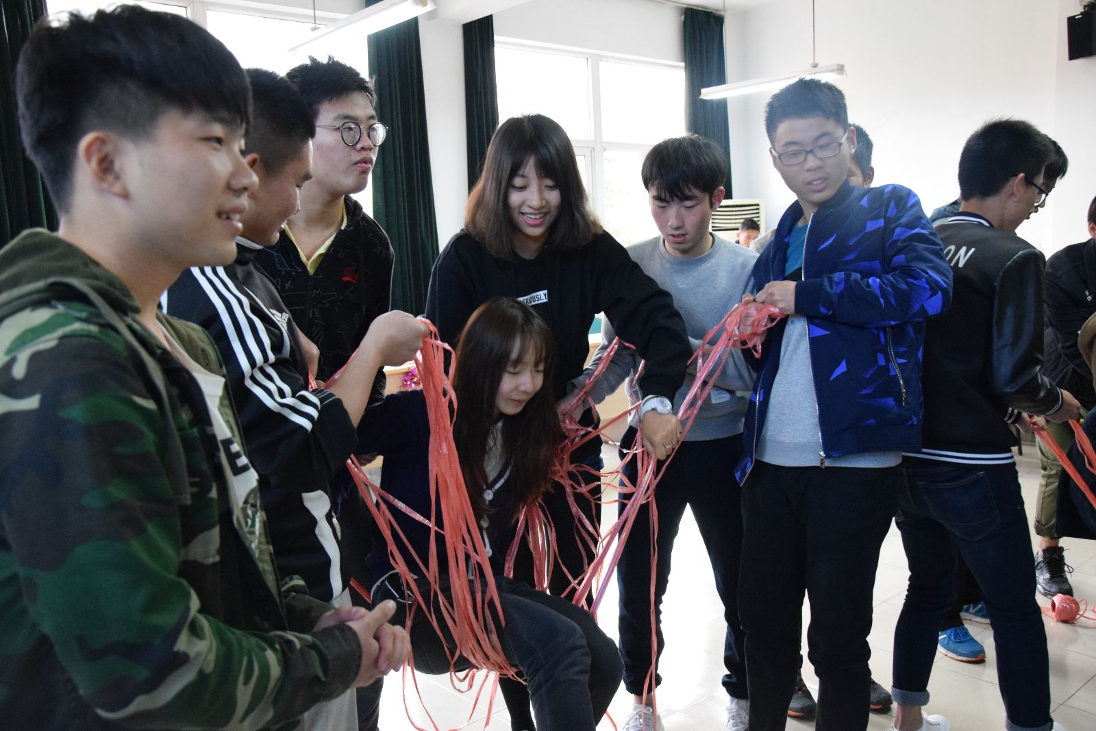 此次联谊进行了三个小游戏,第一个游戏“按摩也疯狂”,在趾压板上跳绳,各组都积极参与游戏,第二个游戏“最强人力轿”,四组同学合并为了两组,一二为一组,三四为一组,每组同学都表现出了从一开始的合作生疏到合作默契的一面,都用绳子将一位同学抬了起来,第三个游戏“阿里巴巴的宝藏”,是此次联谊活动的重头戏,同学们随机组成队伍,开始寻找“宝藏”,在这个游戏里,四个组要找到属于自己这一组的“宝藏”,各组同学不仅表现出了找“宝藏”的热情,并且在找到其他组的“宝藏”时,去和其他组交换物品,体现友谊第一,比赛第二的良好竞争精神。