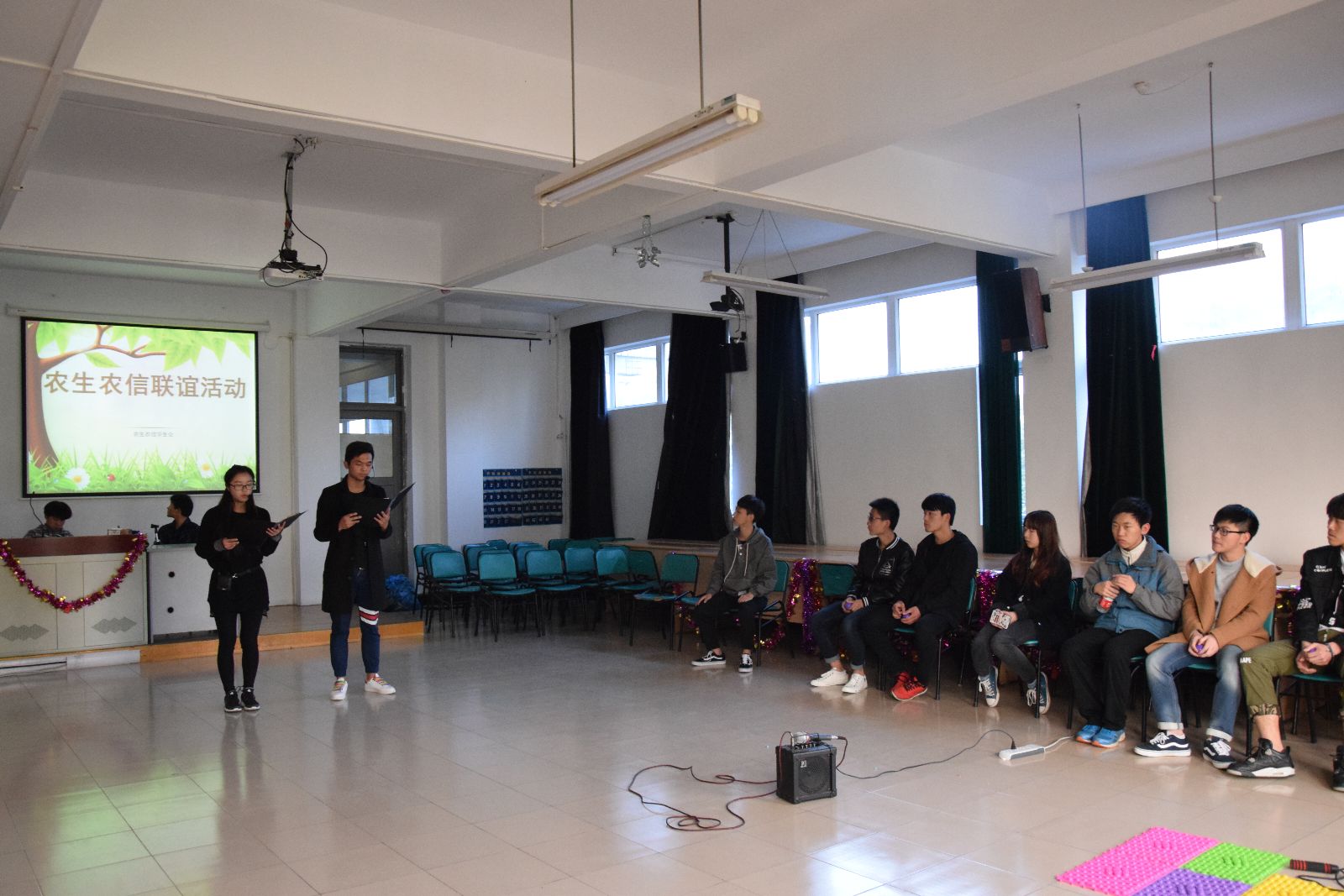 3月29日,在一教315由农生系与农信系联合举办联谊活动,联谊由农生系和农信系联合主持,农生系与农信系的各主席、团副、部长们都应邀出席此次活动,农生系与农信系各邀请了10名学生参与联谊活动。