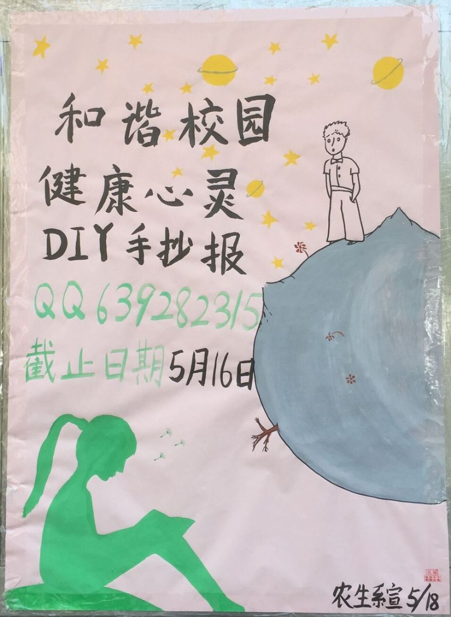 “525”是“我爱我”的谐音,爱自己才能更好的爱他人。为了引导学生关注自我心理健康,增强心理保健意识,热爱生命、塑造积极、健康、乐观的阳光心态,我系举办了“和谐校园健康心灵”DIY创意手抄报征集活动。本次活动由我系纪检部组织。