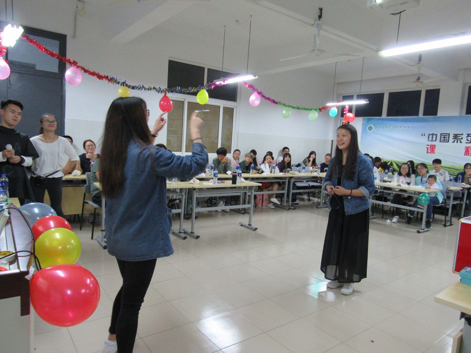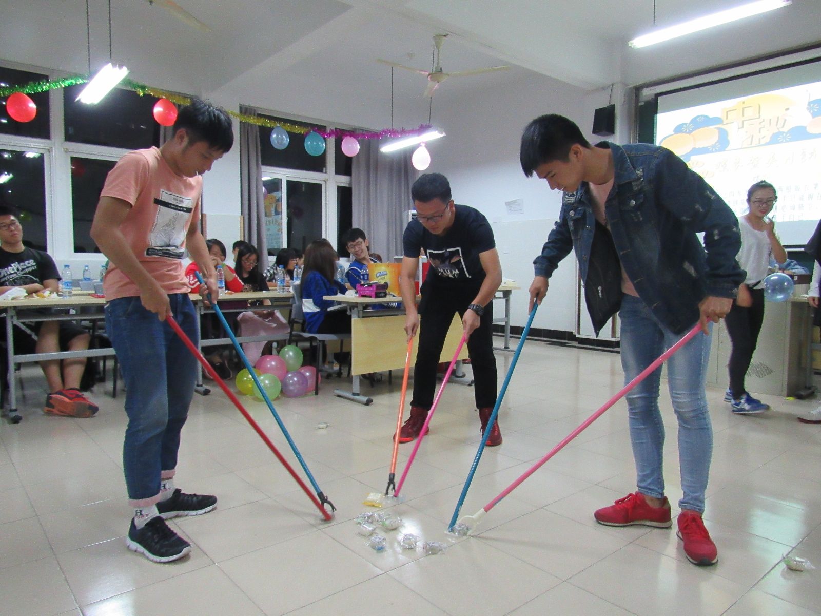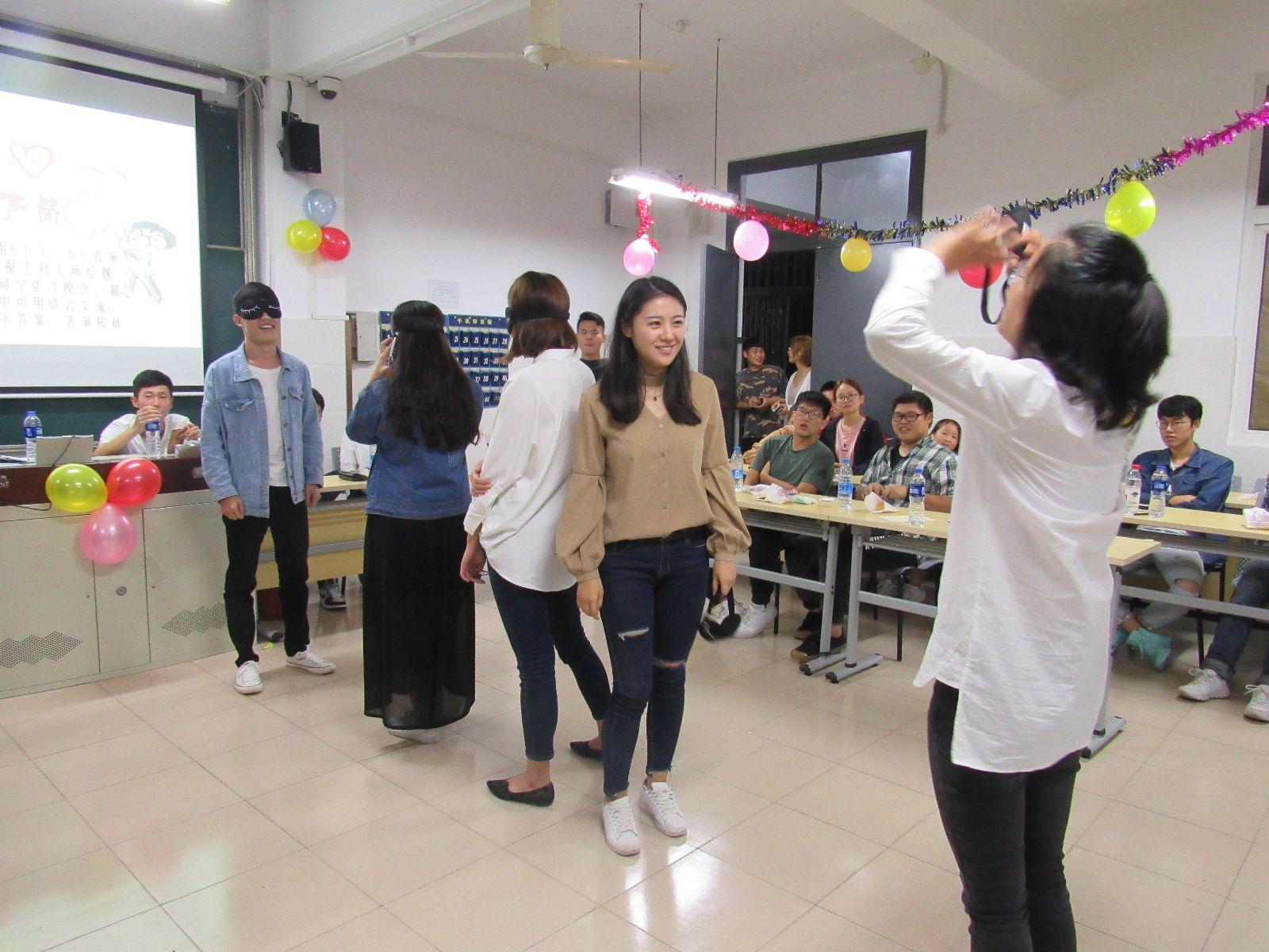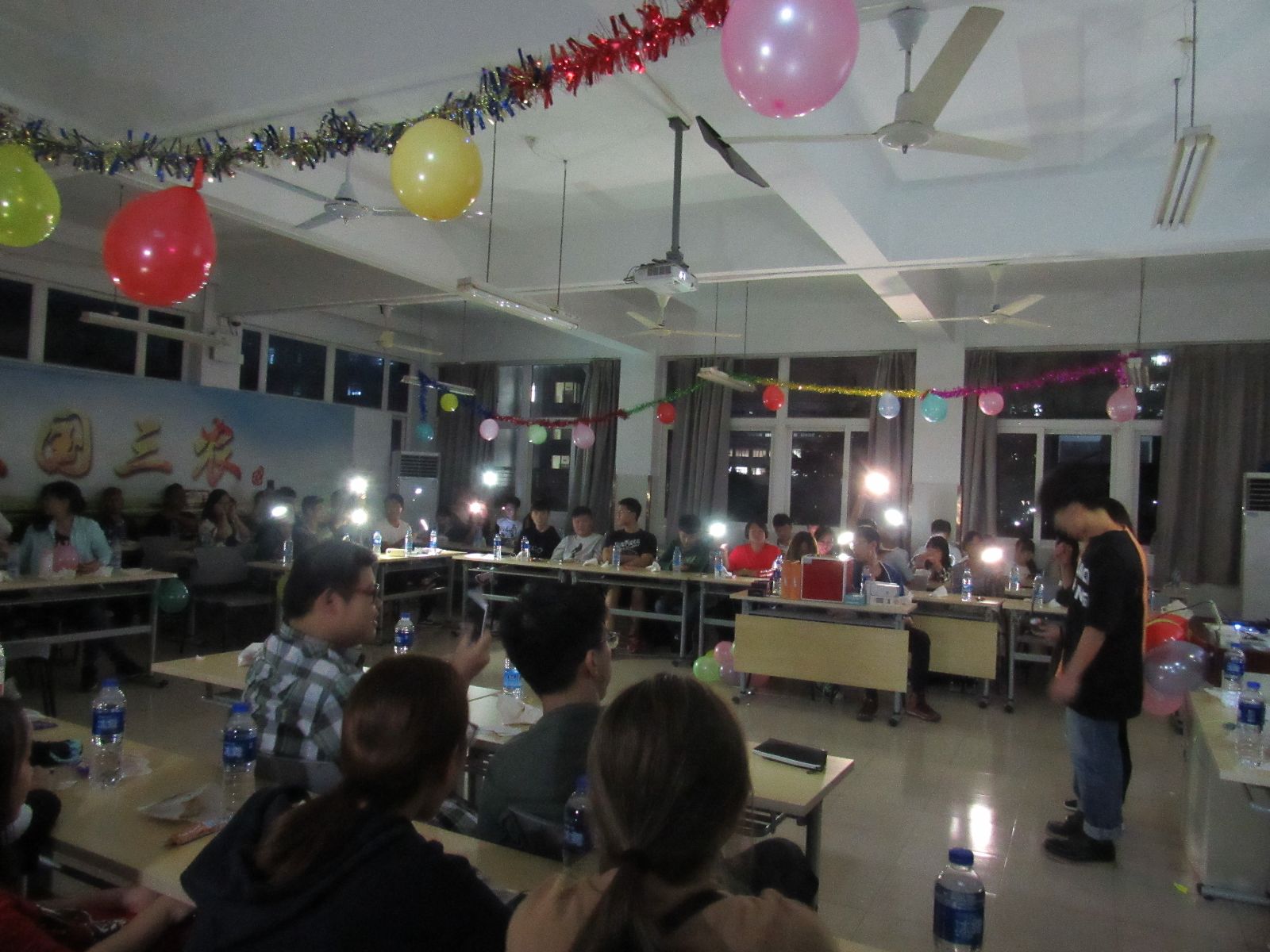 活动中,大一新生徐思雨和周钰龙的歌曲《城里的月光》,伴随着手机灯光,大家随音乐一起摇摆;60年的历史铸就了60年的辉煌,紧接着殷方东、刘嘉燊和周凯同学带来的《国庆诗歌朗诵》完美的诠释了中国的辉煌历史,点燃了同学们心中的熊熊烈火;游戏环节再次让现场气氛达到白热化,游戏有晾衣杆夹月饼、心有灵犀,演技穿话筒,踩气球等,游戏虽然普通,但同学们秉持着“友谊第一,比赛第二”的运动精神,彼此之间合作亲密无间;抽奖环节每位同学也都积极踊跃的参与其中,获奖者收获满满。