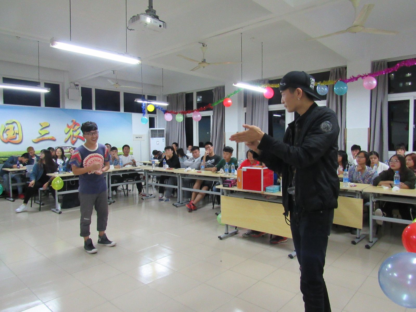 为落实扶贫政策,体现学院对家庭经济困难学生的关爱,9月28日晚,农生系在一教402举办了以“举杯邀月迎国庆,彩旗飘飘庆中秋”为主题的联谊活动。出席此次活动的有系团总支书记、辅导员及60余名在校家庭经济困难学生。
