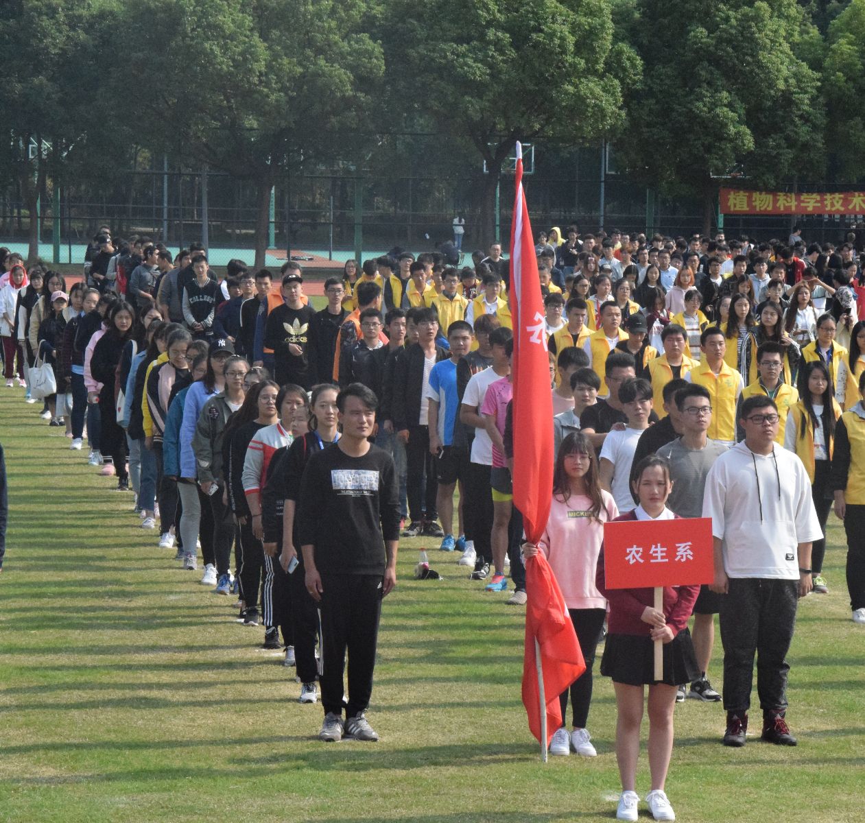 运动会开幕式上由校长魏华发言完毕宣布运动会正式开始,各系先后进行了广播操和方阵比赛。此次农生系在方阵的服装上成为了操场上靓丽的一道风景线,个个衣着鲜艳,昂首阔步,脸上洋溢着自信,展现出青年特有的朝气与活力。经过多日的彩排和练习,大家也都充满自信的展现自己最好的一面。在比赛正式开始,赛场上随着大家高涨的气氛顿时沸腾起来。加油助威的声音围绕着整个操场。在比赛期间,农生系学生会的各个部门也通过不一样的方式为运动员加油助威,积极配合运动会的工作,以确保活动过程的顺利进行。由农生系秘书处的各位干事轮流为运动员和教师编写加油词,通过广播的形式,为正在比赛的各位运动员带来动力;为了确保每一位学生的到场情况,纪检部也安排了严密的签到时间;志愿者服务部和权益部在运动会开始前就在为系部搬桌椅和道具进行场地的布置以及其他后勤工作;红十字会的急救人员运用之前培训过的相关急救知识,在每一位运动员结束比赛后立即上前慰问,也及时对本次运动会中三名受伤的同学进行了伤口处理,确保了每位同学的安全的参加此次运动会。