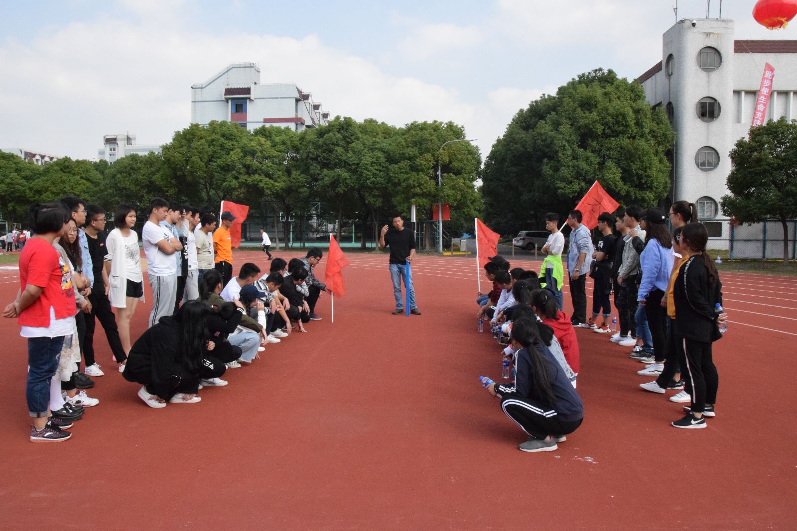 运动场上一声声令下,让同学们学会了服从;一场场的挑战让他们从陌生到熟悉;一幕幕的惊险动作,让他们从陌生到信任;一场场的对决,让他们背负了集体的荣誉感;一次次的商讨,让他们团队的每个人都被赋予了角色。