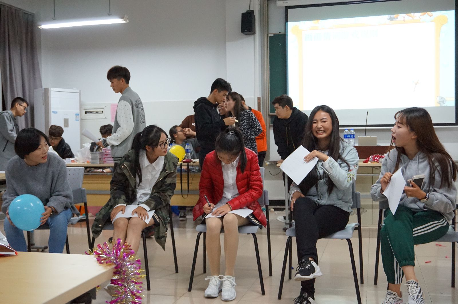 晚会的气氛先是以一首独唱《不能说的秘密》点燃了全场的气氛,动听的歌声让在场的各位同学无不触动心弦。接下来的才艺表演以一首歌舞串烧《我们》,精彩的打碟和一首笛子独奏为在场的各位带来一场精美绝伦的视觉与听觉的享受,赢得了在场的各位阵阵掌声,之后的小品《打劫》逗得全场捧腹大笑,也让同学们明白了要加强自我安全防范意识。在晚会期间穿插着各种游戏,恰如其分的将晚会带向一个又一个高潮。“害你在心口难开”引发全场的气氛;接下来的“挤气球”让同学们在“面红耳赤”的欢乐中体会到了合作的重要性;“画画猜词”更为全场带来阵阵笑声,随后的“瞎子背瘸子”考验两个人的默契,让同学们放声大笑。伴随着欢快的气氛,这次的联谊活动中还有抽奖环节,这更是吊足了各位的胃口,精美的小礼物更是大家赞叹不绝。