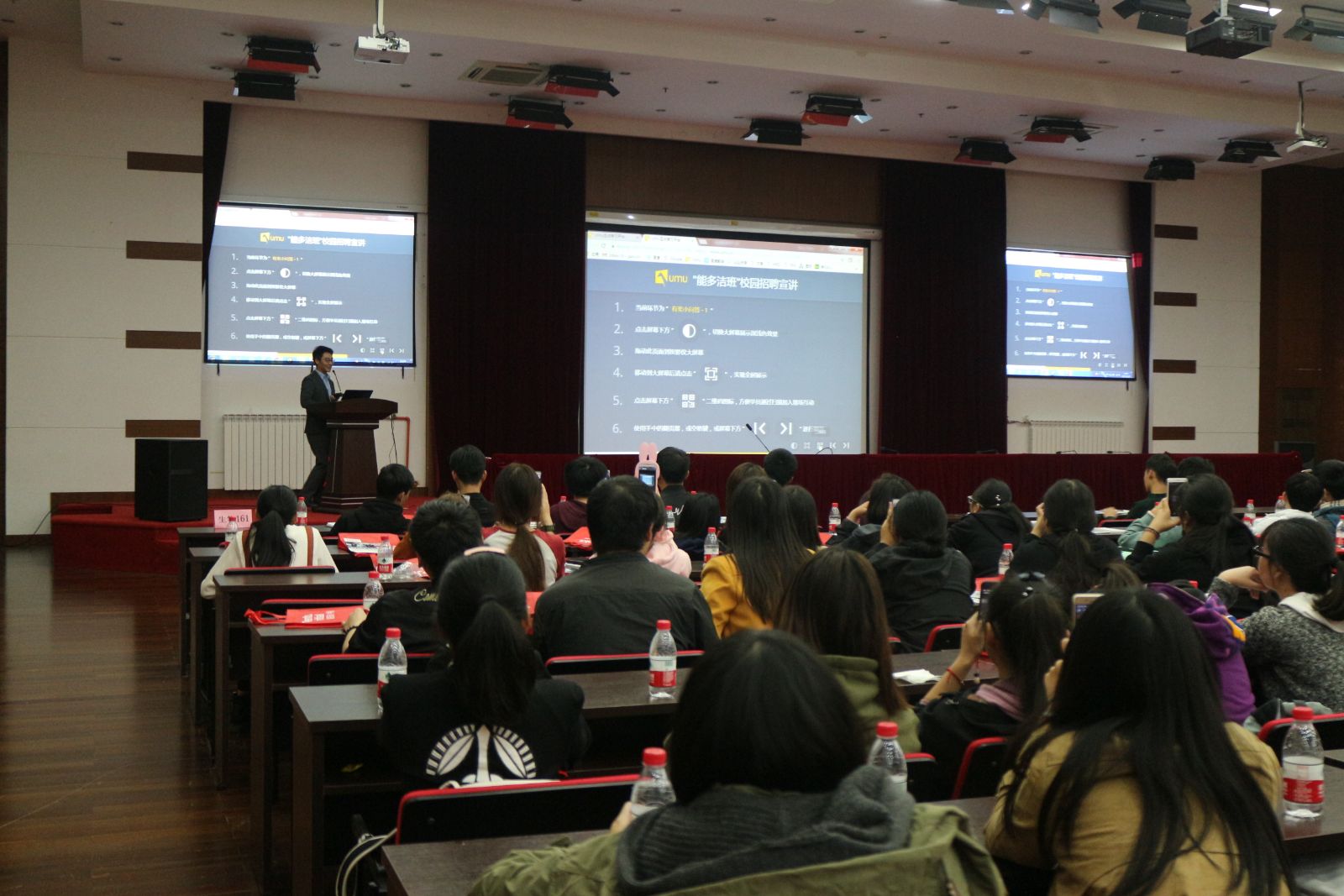 随后,能多洁公司市场部总监、重点客户部经理、人事部负责人分别向同学们介绍了公司的概况、主营项目、在中国的状况及薪资福利待遇、未来发展等,同学们对公司有一定的了解。中间穿插的与公司有关的有趣互动问答环节调动了同学们的积极性和参与度。