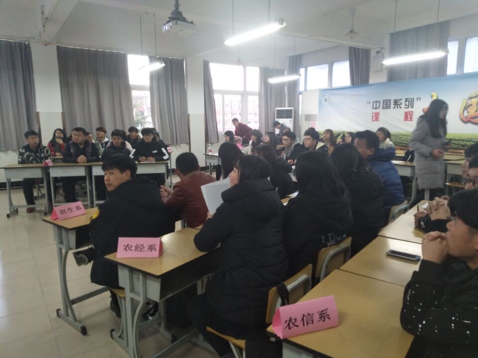 2017年12月18日,农生系学科部在食堂门口开展了“国学诵读艺术”换书活动,12月19日下午,在一教315开展了国学诵读品味四大名著知识竞赛,出席本次活动的有上海农林职业技术学院的7个系主席及农生系十几名同学。
