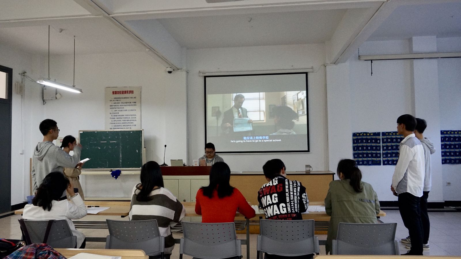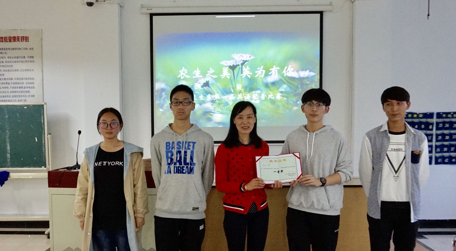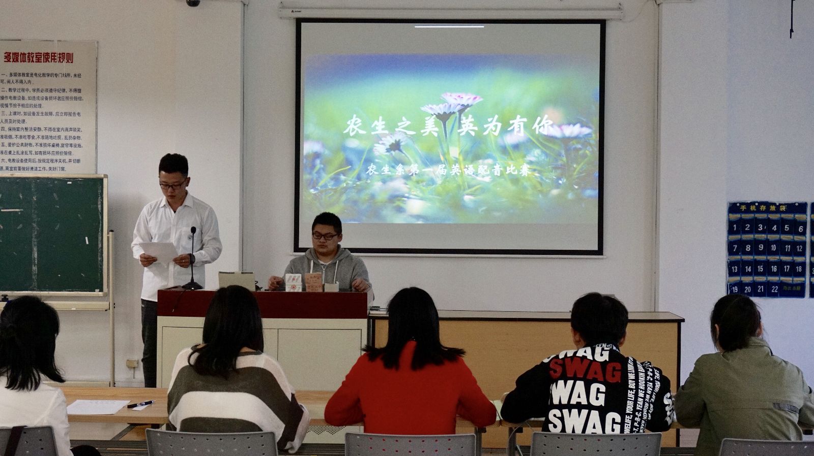 2018年4月26日下午4点10分,农生系“第一届英语视频配音大赛”在一教202拉开帷幕。莅临本次大赛的评委及嘉宾有:农生系团总支书记高晓翠、学院英语老师范玲玲和张玉瑜以及农生系团学代表。