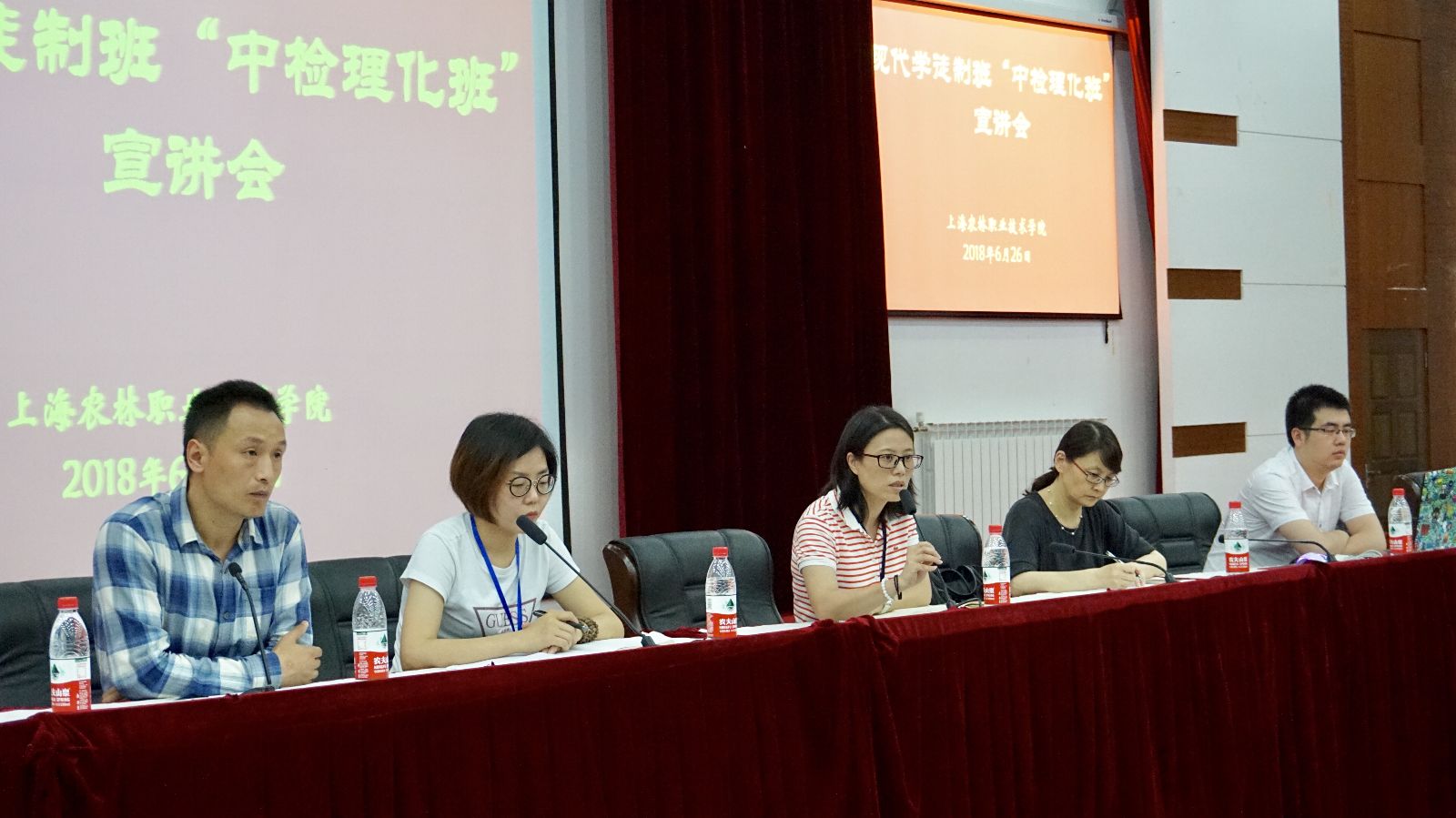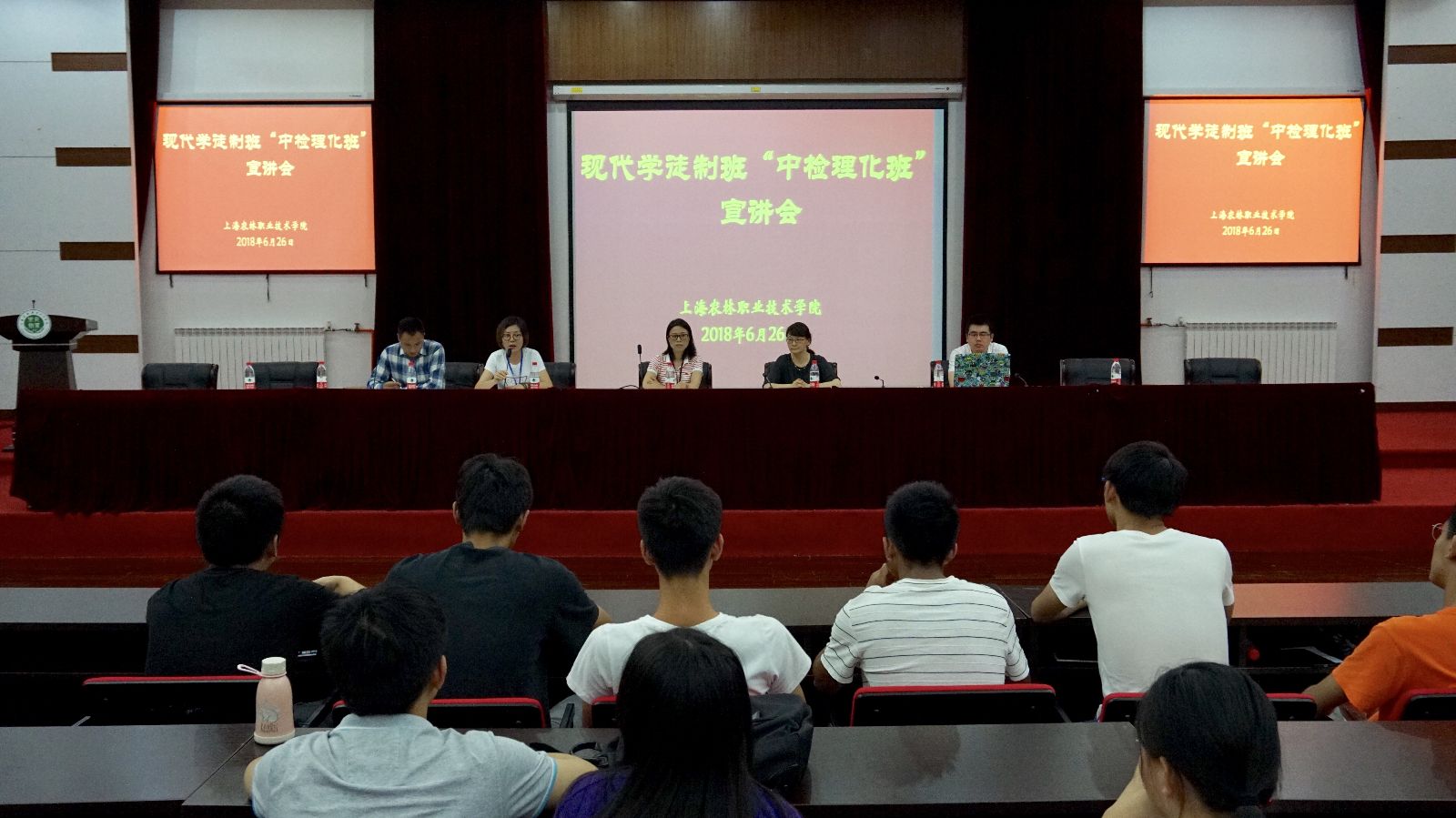 6月26日,在205报告厅,农生系组织召开现代学徒制“中检理化班”宣讲会。中检集团、学院校企办、农生系相关领导及高职2017级160多余名学生参加。