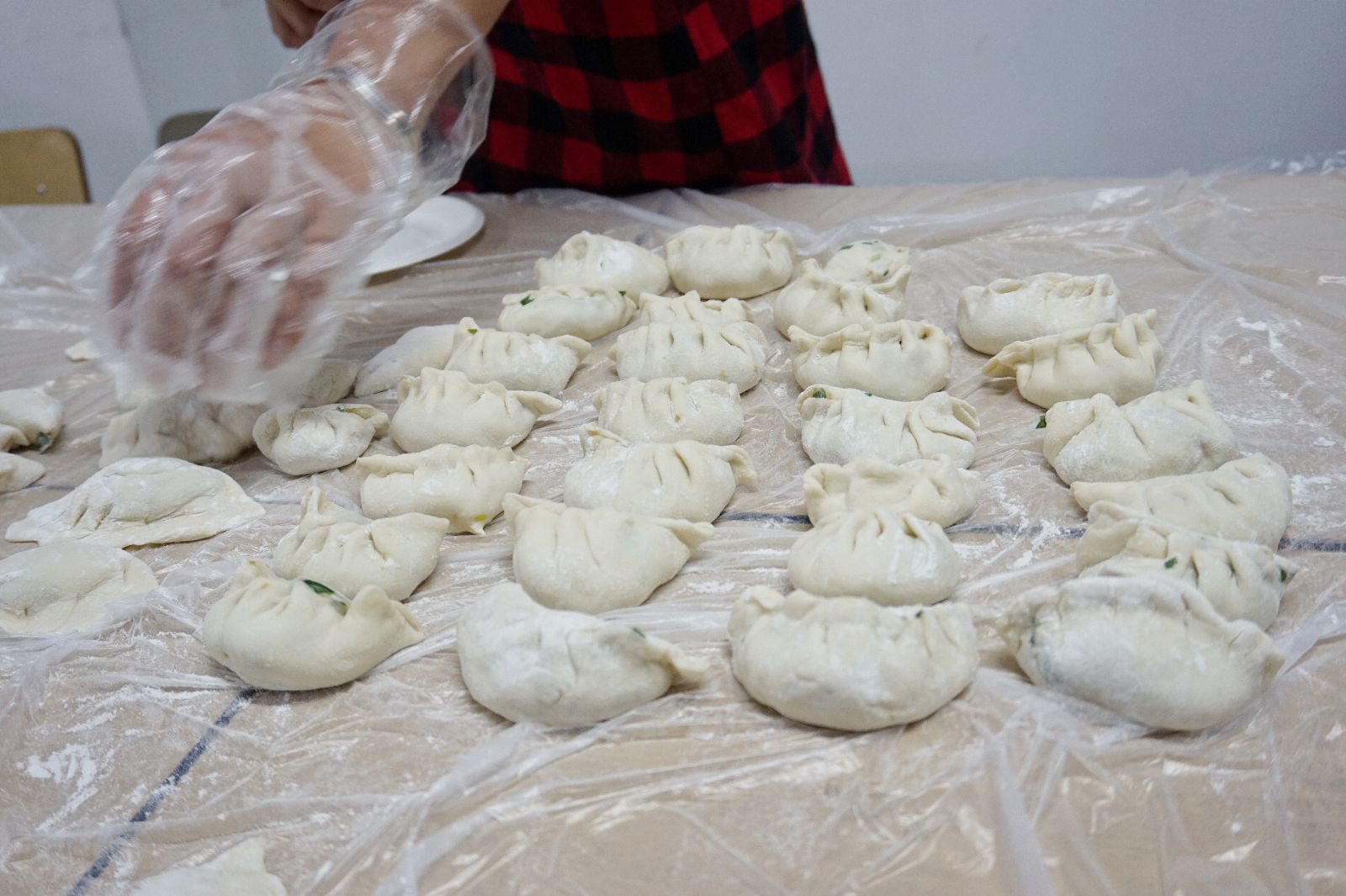 活动现场,同学们怀着无比期待的心情冲到桌子旁,捋起衣袖,揉面团、擀饺皮、包饺子,案板上一字摆开的擀面杖、大盆、面团、饺子馅应有尽有,大家分工明确,忙得不亦乐乎。由于同学们来自五湖四海,所以饺子的包法也各不相同,女同学心灵手巧,包出的饺子精美别致;男同学不甘落后,也试着包各种花样,顷刻间,涌现了一大批丰富多彩、形式各异的饺子王国,同时,也显示出了各个地方的风俗习惯差异。看着自己包的饺子,感受着现场和谐幸福的浓厚氛围,大家的脸上洋溢着兴奋和自豪。