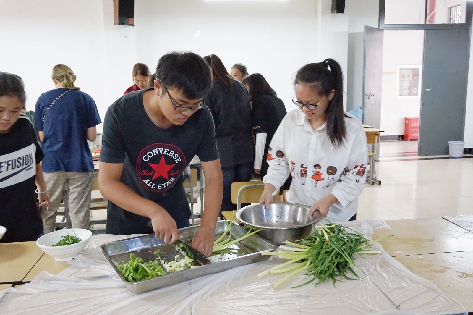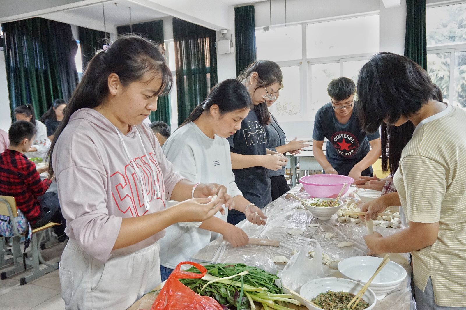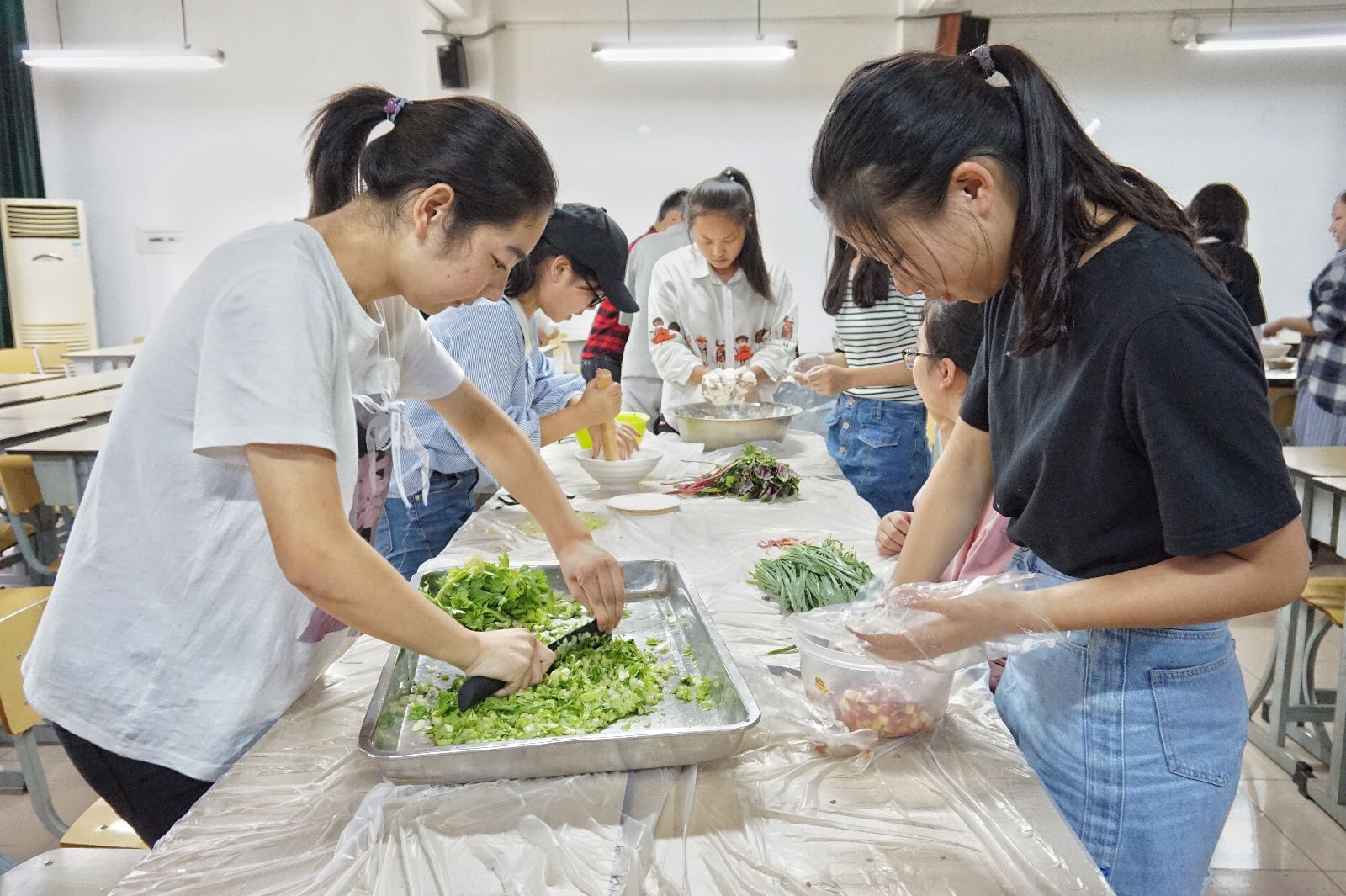 为丰富同学们的课余生活,增强社团亲和力,提升同学们的动手能力, 9月28日下午食全食美社在第一教学楼202室与315室组织了一次饺子宴。此活动吸引了许多18级新同学参加,大家欢聚在一起,吃饺子、同欢乐。