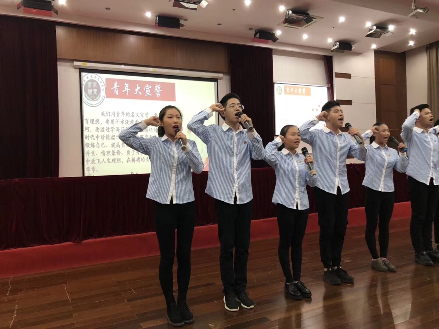 首先,主持人宣读比赛开幕词后,选手们依次登台,用深情的语言,抑扬顿挫地抒发自己对习近平总书记十九大发言以来的感想,对新时代对理想和担当的感悟。农生系质检181陈子涛,生物182班罗萌萌用自己的个人朗诵抒发出自己身为青年人,对于团对于党对于祖国担当的满腔热血。紧接着就开始了各个系部的团体赛。代表着各个系部参加比赛的选手们气势磅礴,深情并茂绘声绘色地为我们描述了一幅祖国新时代未来发展的宏伟蓝图。农生系作为团体第六组上场,他们用他们的演绎讲述了新青年在新时代中为祖国,为人民奋勇拼搏的精神。同学们坚定的语气和磅礴的气势赢得了台下的观众们时不时的热烈掌声,令人啧啧称赞。