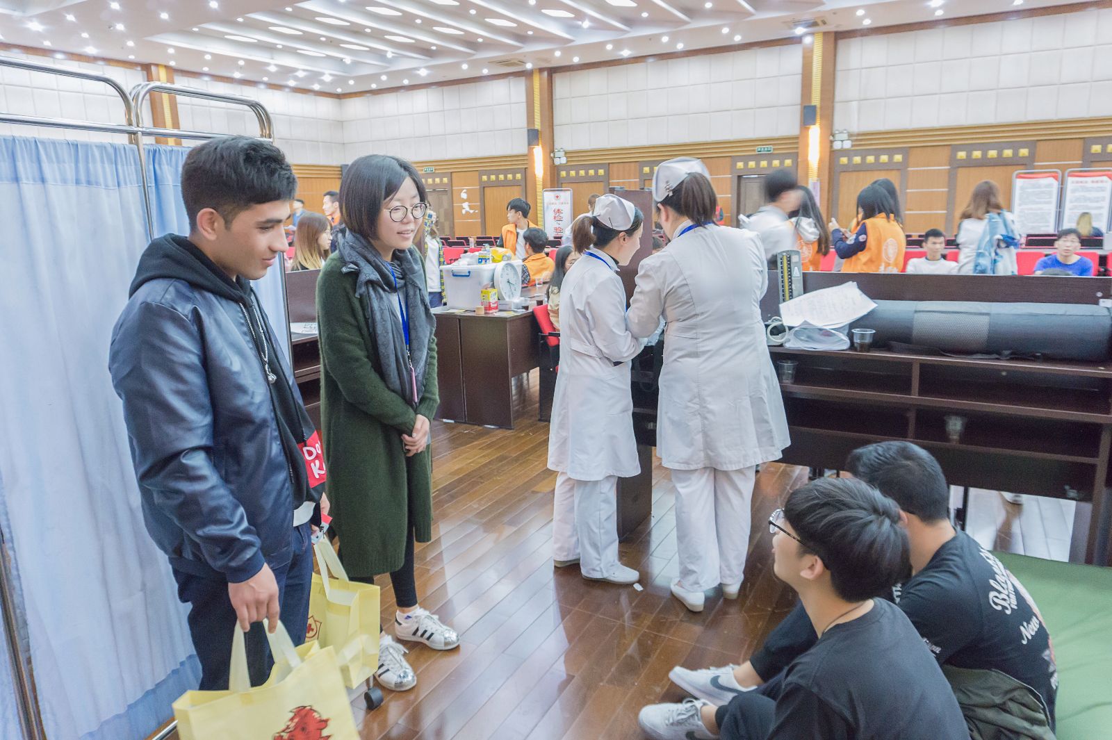 为响应学院的无偿献血活动,使得更多的人了解并参与各项爱心事业,献出自己的血液,拯救无法重来的生命。农生系的志愿者们早早的来到现场进行活动的前期准备,现场共分为等候区、体检区、献血区、休息区、医护区五大区域,志愿者轮班为前来献血的同学们提供服务和帮助。在献血区,前来献血的同学们纷纷挽起袖管,躺在采血椅上,医生们细心指导并认真为前来献血的同学们抽血检验,收集血液样本。有些同学在献血后会出现眩晕等症状,志愿者们也配合后勤医疗队伍对其做出适当的应急措施。