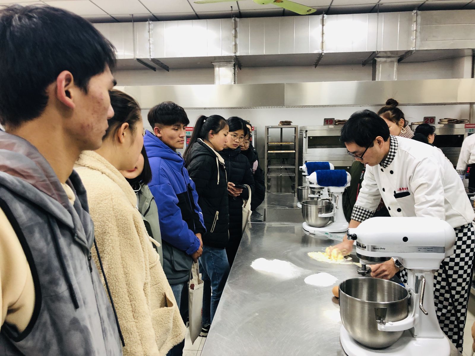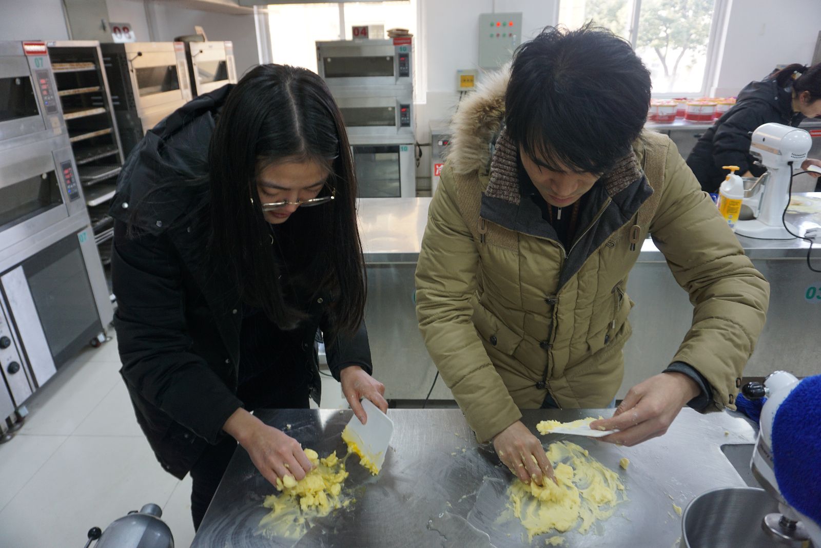 最后,食品科技学校的西点老师现场进行做饼干的教学,我校同学对此跃跃欲试,在观摩了老师的饼干教学之后,我校同学们开始自己动手操作,在操作台根据西点老师的指点和自我操作,同学们都做出了美味可口的点心并获得了西点老师的好评和鼓励。