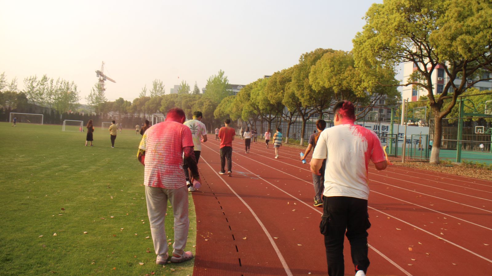时间大约过去仅5分钟,就已经陆续有选手通关成功,到达终点,随着完成挑战的人数越来越多,操场跑道也被彩色的玉米淀粉点缀,变得五彩斑斓,赏心悦目。跑完后的选手身穿七彩T恤,互撒彩色粉,并领取到了属于自己的纪念勋章。