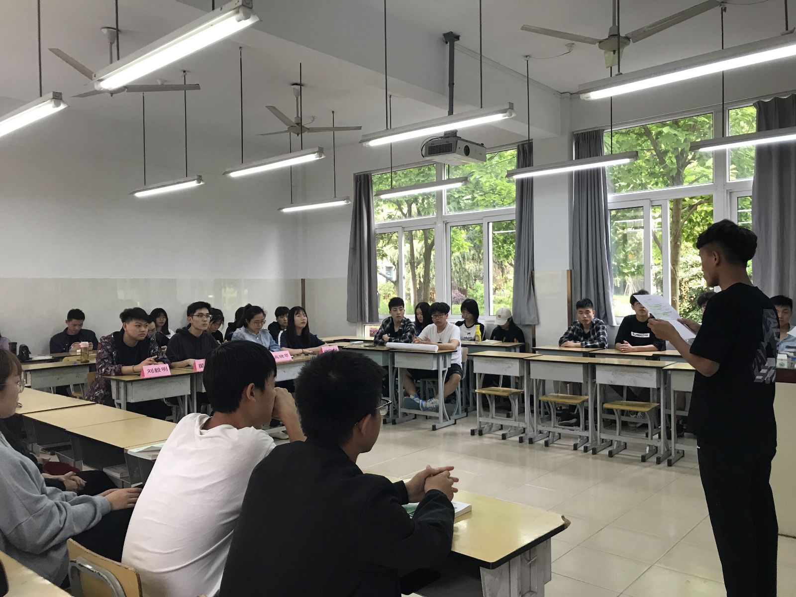 活动开展以来,同学们读书热情空前高涨,积极响应,认真准备。各组在选定分享书目后,课余时间讨论书籍内容,构思PPT制作,交流读书心得。环境181班蒋钰芸同学分享的《倾城之恋》,语言画面充满现实感,引人深思;环境182班施奕雯同学通过讲故事形式再现龙应台《目送》;生物181班丁伟同学生动地演绎了《解忧杂货店》的故事情节;生物182班管欣怡、饶思怡、贺晴三位同学分享的《红玫瑰与白玫瑰》,让现场师生身临其境,感受到当时社会对人性和思想的束缚;质检181班朱伊然同学通过《边城》让我们重新认识了沈从文先生。