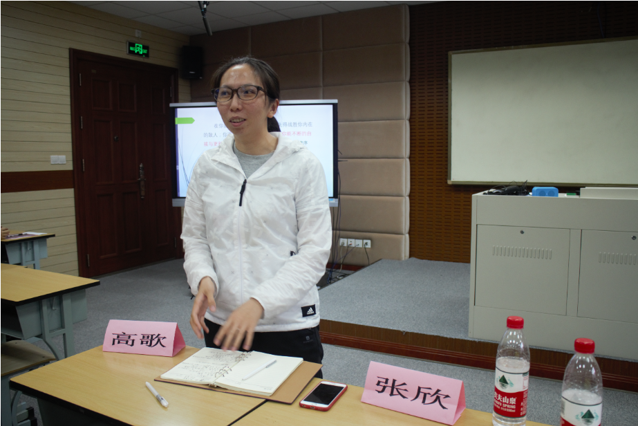 各组精彩演讲后,范小雪肯定了读书活动的意义和同学的精彩表现,从每组分享的优缺点到PPT的制作、呈现方式、内容解读等给予了细致的点评和建议。最后向同学们分享了《约翰·克利斯朵夫》这本书,通过克利斯朵夫在精神方面所经历的艰险展现主人公不断自拔与更新的人生态度,鼓励同学们战胜内在的敌人,保持进取的精神,多读书、读好书,丰富自己,提升自己。