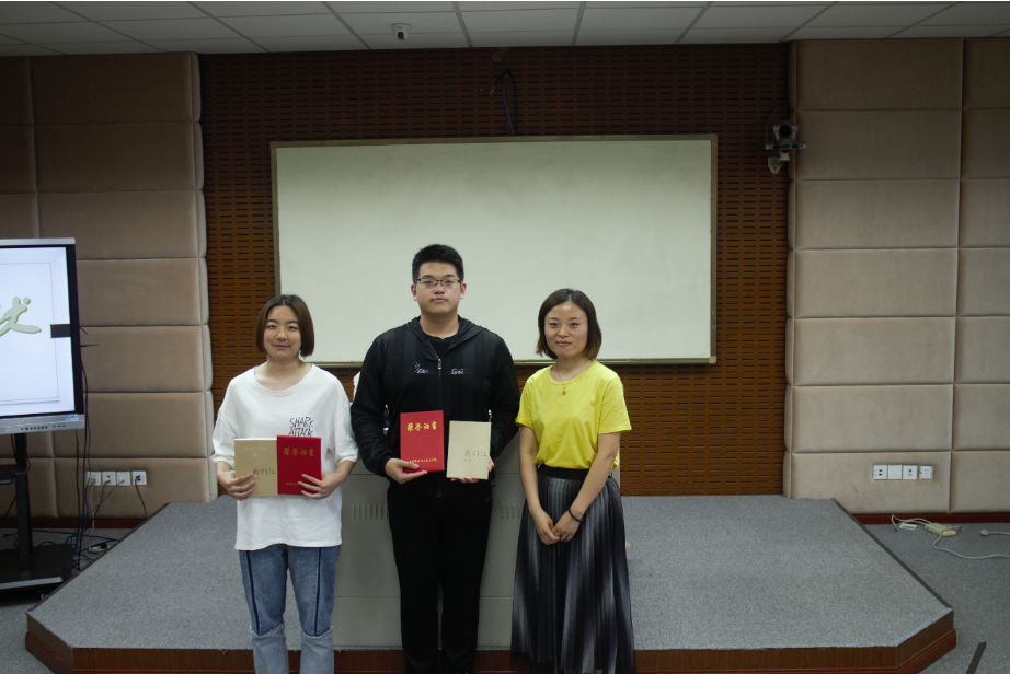 环境182班组的《嫌疑人X的献身》获一等奖,生物181班组的《追风筝的人》和质检181班组的《边城》获二等奖,环境181组的《嫌疑人X的献身》和生物181班组的《撒哈拉的故事》获三等奖。现场还为参与到系读书分享活动并撰写优秀读书心得的同学颁发了奖品。