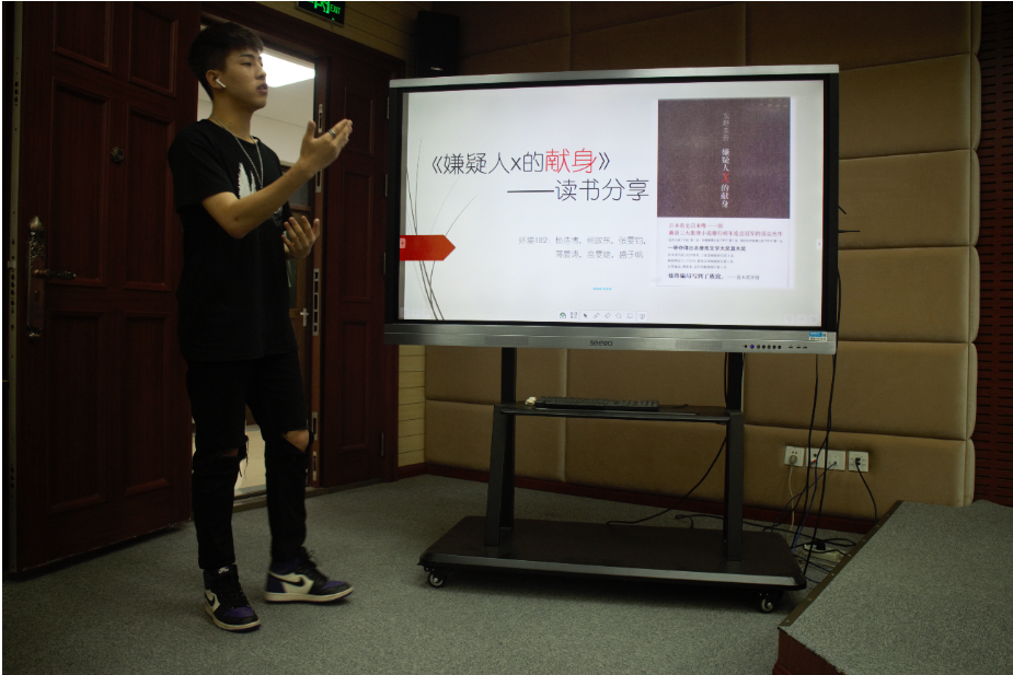 5组同学结合PPT以个人讲述或分饰角色的形式分享了作品,介绍书籍内容的同时着重表达了书籍对自己心灵成长的影响。环境181班、环境182班两组同学分别从《嫌疑人X的献身》中着重分享了对爱情观及奉献的理解,体味男主角面对爱情的卑微及爱是否有逻辑的探求。生物181班钟天民组从《追风筝的人》中看到了真挚的友谊与付出,也看到了人性的背叛与救赎。生物181班赖杨帆说:三毛及《撒哈拉的故事》带给自己很多成长的力量,帮助自己战胜孤独。三毛7年孤独的岁月,学习了很多语言和西班牙文学,让她感悟到在孤独的岁月里,可以努力让自己变的更好。质检181班分享的《边城》,让她们对爱情有了新一番的认识,对人性有了新一番的了解。