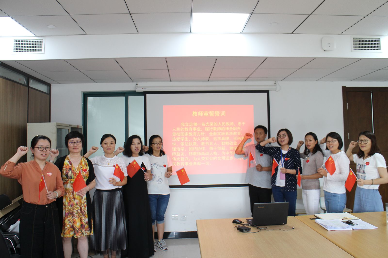 第二部分是组织党员教师共唱歌曲《长大后我就成了你》,重温教师誓词。“长大后我就成了你,才知道那间教室,放飞的是希望,守巢的总是你。长大后我就成了你,才知道那块黑板,写下的是真理,擦去的是功利。”“我立志做一名光荣的人民教师,忠于人民的教育事业,履行教师的神圣职责……”悠扬的歌声和铿锵有力的宣誓声,唤醒了党员教师的从教初心,更表达了党员教师矢志不渝的追求和信念。