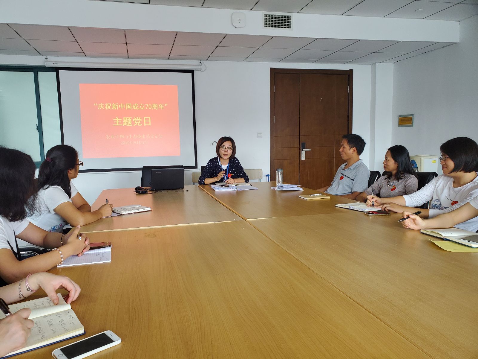 9月27日下午,农业生物与生态技术系党支部在综合楼701组织开展了“庆祝新中国七十华诞,弘扬新时代尊师风尚”主题党日活动。支部书记蒋洁主持,党员教师参加。