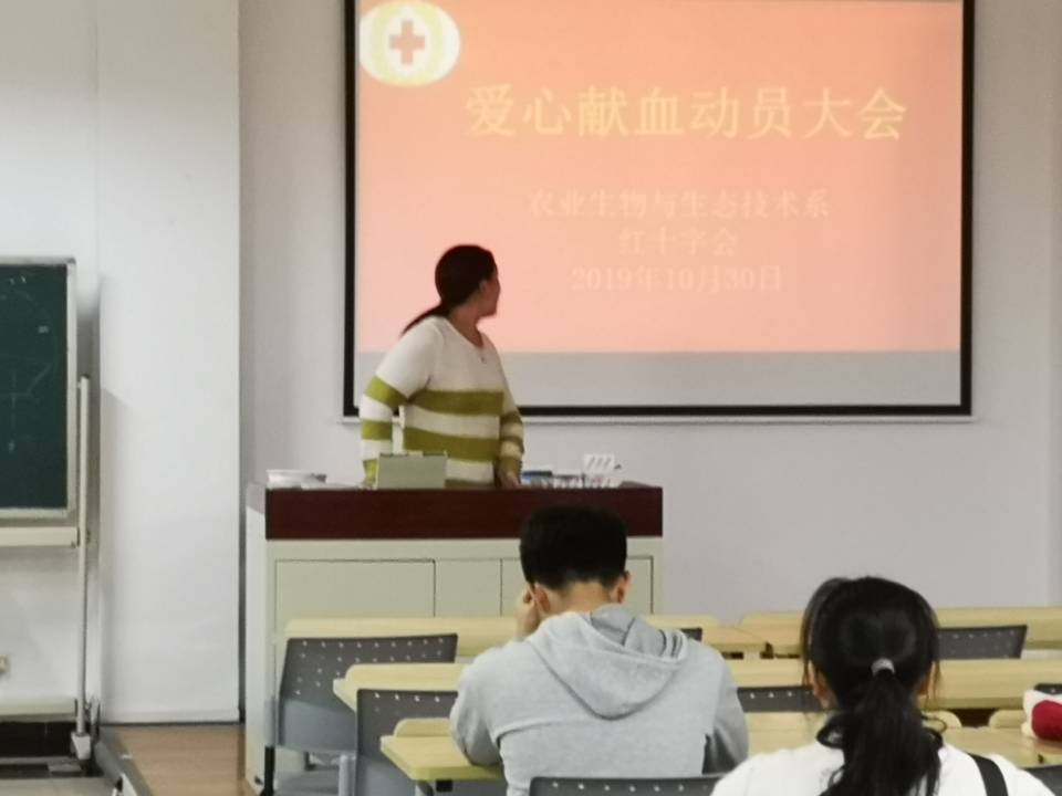 为积极落实学院开展大学生无偿献血工作通知,农生系与10月30日下午在一教202进行无偿献血活动宣传,2018级学生及部分2019级学生参加。