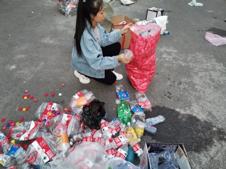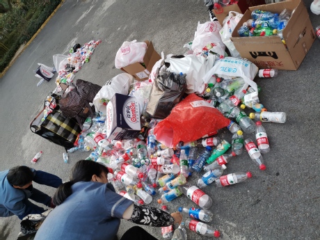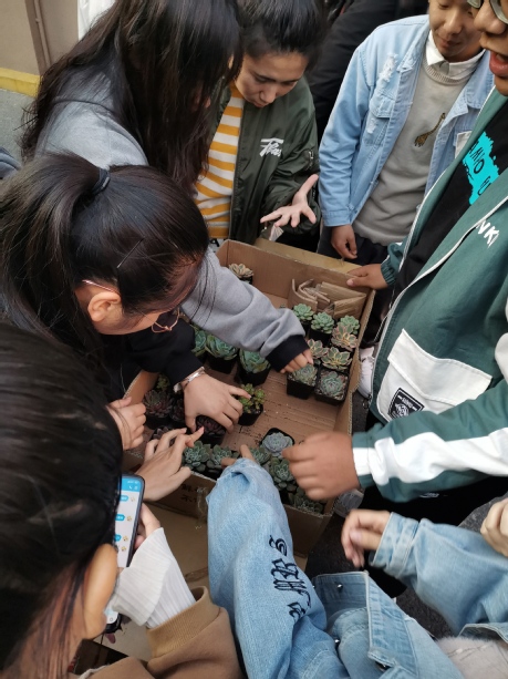 活动期间,同学们都积极参与,从宿舍搬来一袋又一袋的空塑料瓶来换取绿植。四名志愿者负责数瓶子数量,两名志愿者负责发放多肉植物,大家都情绪高涨。活动结束后,把这些塑料瓶子送给了保洁工人,同时可帮助保洁工人进行了分类。