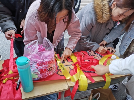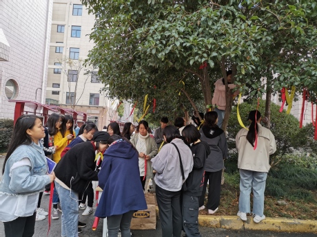 经过前期宣传,活动一开始就吸引了大量的同学和老师参与,同学们认真书写着对家人和朋友的祝福,有的同学感恩父母感恩朋友,有的同学祝福自己未来更好等等,然后亲自挂在树上,很快树上挂满了承载着祝福语的丝带;活动过程中工作人员也为大家讲述感恩节的相关知识,并提醒同学们记得给父母、亲朋好友等打个电话或者发个短信表达自己感恩之心,活动现场气氛热闹非凡。