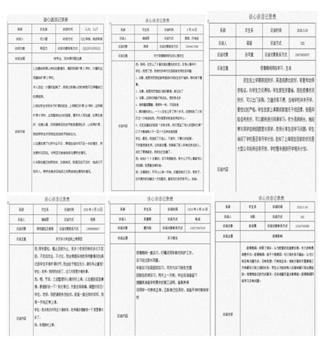 “最近家里情况如何,有困难吗?”、“最近网课有没有按时学啊?”、“实习情况如何?”“看你朋友圈动态有些消极,你有心事吗?”“有情况及时沟通。”、“谢谢老师关心!”,这是我系辅导员与学生的谈话。我系结合学校疫情防控工作的总体要求,创新工作方法通过线上谈心谈话针对性地做好学生思想引导和心理健康工作。