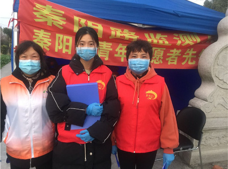 质检贯191班张顾燕(中)参与疫情防控志愿服务