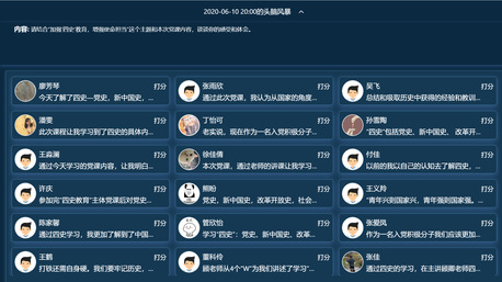 这次“云”党课,增强了同学们对“四史”学习的认识,激发了同学们学习“四史”的积极性,更让同学们进一步意识到自己的责任和使命,化作行动的力量。质检191班许斌说:“学习四史,就是要提醒我们走得再远,都不能忘记来时的路。”生物182班蔡莉说:“我们在享受现在和平富足生活的时候,也不能忘记那些为党艰苦奋斗的人。”退伍军人许庆说:“四史”教学,不是一般的历史教学,而是以历史为基础的政治教育。作为一名中国人,对中国的历史更要铭记于心。使命感不只是在祖国有危机的时候才体现出来,而是因为想要祖国强大所以才有使命感,要为祖国的繁荣昌盛增强自己的使命担当!” 质检181班吴飞说:“发展是接力棒,前人的努力让现今的中国有了辉煌的成就,作为入党积极分子的我,应当以身作则,不辜负前人的努力与期望,为中国的未来创造更多辉煌的成就。”