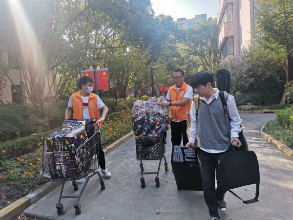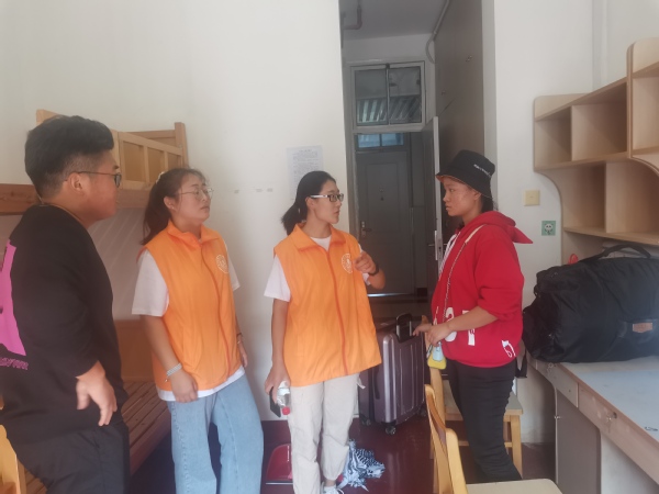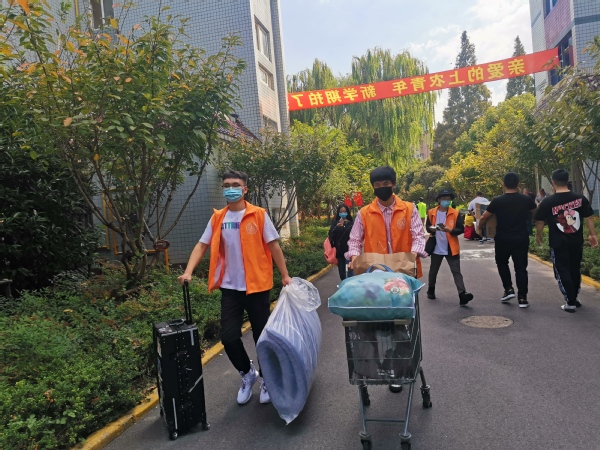 在新生报到的第一教学楼109,设置有专门的引导摊位,负责提醒新生填写表格,收集新生的基本信息,并引导新生完成报到流程。早在暑假中,农生系学生会就发动同学们,集思广益,发掘在农林的生活秘诀,为新生解疑答惑,为他们快速适应大学的生活提供了帮助;从早晨7点30开始,在新生宿舍楼下、校园每个角落总能发现一些橙色的身影。无论是站在门口引导还是帮着搬运行李,志愿者们总是坚守自己的岗位。许多新生带着不少包裹,志愿者的帮助,会让舟车劳顿的新生尽早来到宿舍,相信会让他们对学校、对系部留下一个美好的第一印象。