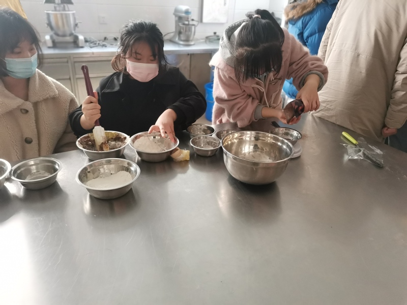 12月25日是一年一度的圣诞节,圣诞节最应景的美食之一就是姜饼。这种带着姜味儿,充满乐趣的小饼干深受大家的喜爱。12月25日下午一点食全食美社在食品实验室开展了“姜饼盛宴”的社团活动,前来参加活动的同学都佩戴好口罩,洗干净双手,四五个同学分成一组开始制作姜饼人。在活动开始前,美食社负责人先是提前准备好每组同学所需要的材料,将每种所需材料配制比例均分好放置在每组的固定位置;活动开始后,同学们井然有序的进行着制作美食,先是用黄油、糖霜、鸡蛋黄、低筋面粉、姜黄粉和可可粉制作姜饼,在烤饼干的同时用蛋清、糖霜和柠檬汁做出各种颜色的糖霜来装饰姜饼人。在各位同学的精心制作下,一个个精致又可爱的姜饼人诞生了,大家其乐融融的分享着圣诞节的快乐。姜饼的制作虽然简单,但当你为它添上美丽的糖霜外衣,可爱的姜饼人搭配着美美的颜色,散发着一种暖心的感觉。