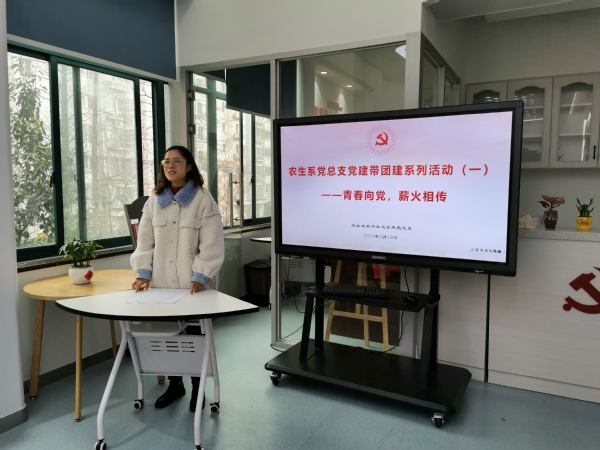 为迎接建党百年,做好党史学习教育,切实发挥基层党团组织的先进性,凝聚党团力量,3月19日中午,农生系党总支在党建服务中心开展“青春向党,薪火相传”党建带团建活动。活动由组织员杜孟静主持,农生系党总支副书记蒋洁,农生系团总支书记高晓翠,学生党员代表许庆以及团员代表参加。