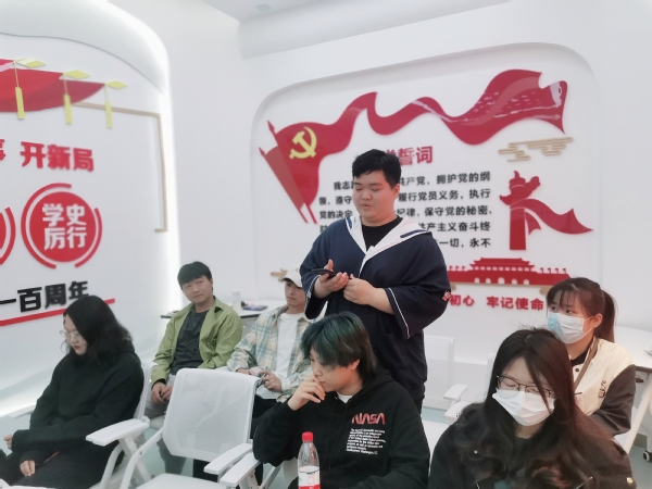 学生党员代表发言后,入党积极分子和团员代表现场进行了互动交流。生物192班纪明德说:我们应该学一样爱一样,因为我们的专业特色都是和生活息息相关的,做好这一件事情,为国家发展提供自己的绵薄之力。