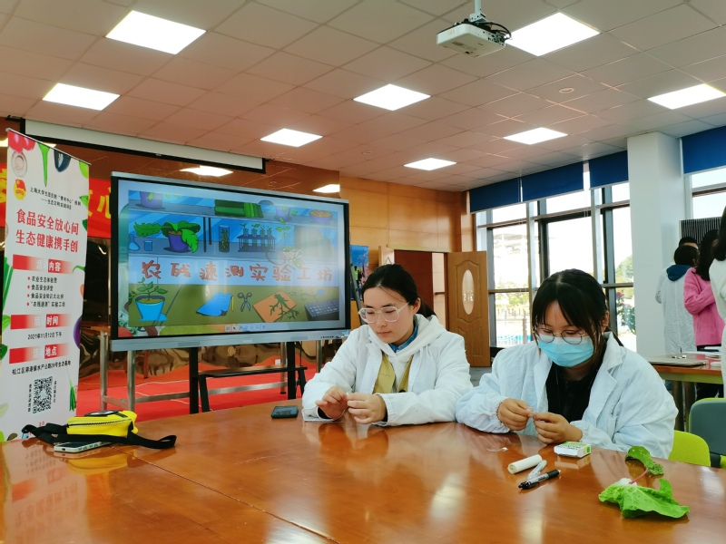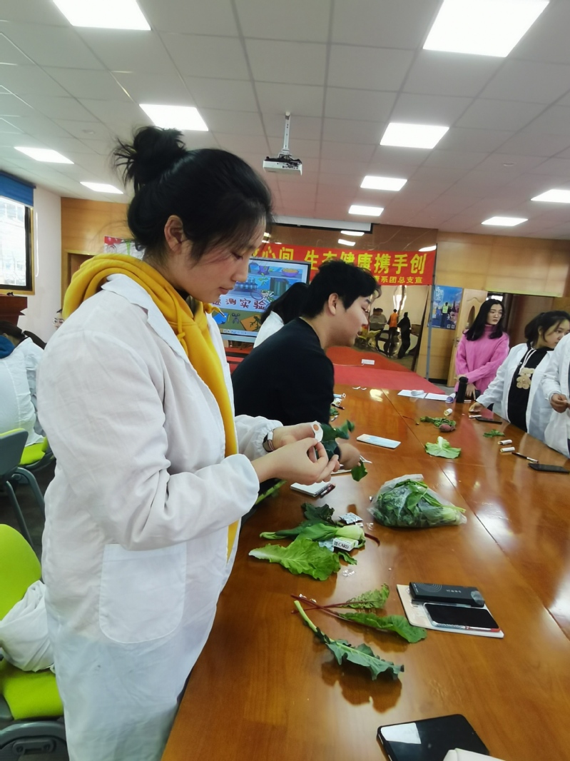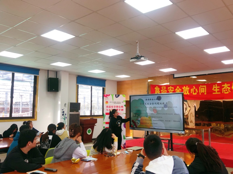 活动共分为生态体验营、食品安全小讲堂、食品安全知识大比拼、“农残速测”实验工坊四个环节。在生态体验营中,团员青年在讲解员的带领下参观了热带植物温室、果树实验区、蔬菜种植区、动物圈养园区,参观过程中同学们近距离接触植物、动物,感受自然与生态的魅力;食品安全小讲堂邀请了农产品质量检测专业优秀学生代表质检201班徐瑾华为大家讲解食品安全常识,通过播放食品安全科普视频、分析食品安全恶性事件案例、研讨当前食品安全问题等环节,引发团员同学对食品安全的思考,大家在热烈的研讨中加深了对食品安全知识和法律的了解;在学习了食品安全知识后,同学们开始了紧张而激烈的“食品安全知识大比拼”,参与人员分为五组,团队协作答题闯关。经过角逐,最终确定前三名余凡、祝伶鑫、汤倪峰,授予“食品安全卫士”奖状;最后同学们穿上实验服化身实验员,在“农残速测”实验工坊中开展农产品农药残留检测实验,在实验过程中演示如何使用速测卡、以及有无农药的判断,使同学们在实验中学习了农残速测原理,掌握了操作流程。