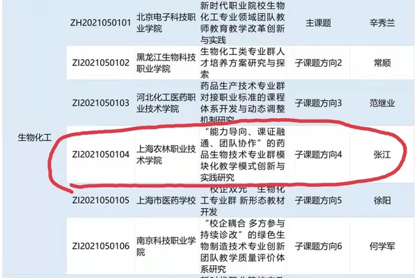 近日,教育部公示第二批国家级职业教育教师教学创新团队课题研究项目立项名单,生药系教师团队“能力导向、课证融通、团队协作”的药品生物技术专业群模块化教学模式创新与实践研究课题获立项,上海共有5个课题研究项目上榜。