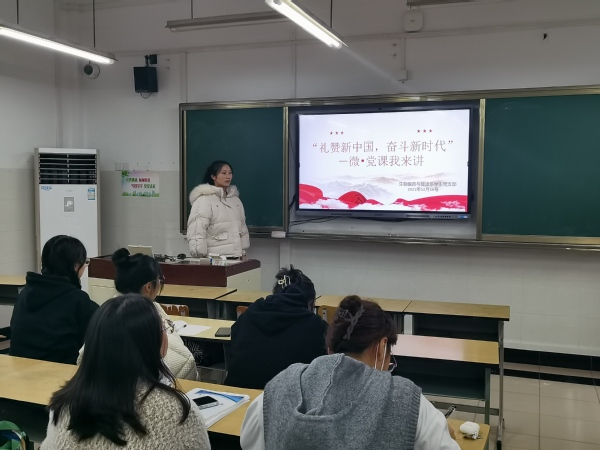 为加强大学生入党积极分子培养教育,深入学习习近平总书记对青年朋友们的寄语精神,12月16日中午,生药系学生党支部在一教205组织开展“礼赞新中国,奋斗新时代”-微•党课我来讲活动。支部书记范小雪、学生党员和33名入党积极分子参会,生物202班廖家萍主持。