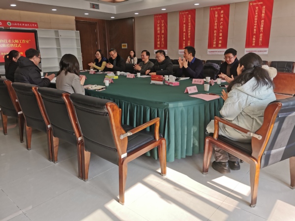 魏华为上海交通大学的孟和教授、丁金梅博士以及复旦大学赵乐乐博士后三位技能大师颁发了授聘证书,生物医药与健康系副主任卢洪秀代表大师工作室承担部门进行了发言。
