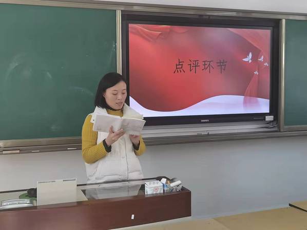 曹秋梅对党课进行点评,肯定了同学们积极参与到业余课堂深化党史学习效果的认真态度和形式,表扬了各小组演讲过程中的亮点如:通过讲故事的形式切入、用数据说话、清晰的逻辑主线等,同时指出了不足及进一步努力方向,希望同学们能在和平年代享受幸福生活的同时,发扬奋斗精神,撸起袖子加油干,走好新时代长征路。活动还通过微信小程序随机抽取了现场同学和老师点评,并评选了优秀党课,为他们进行了赠书活动。